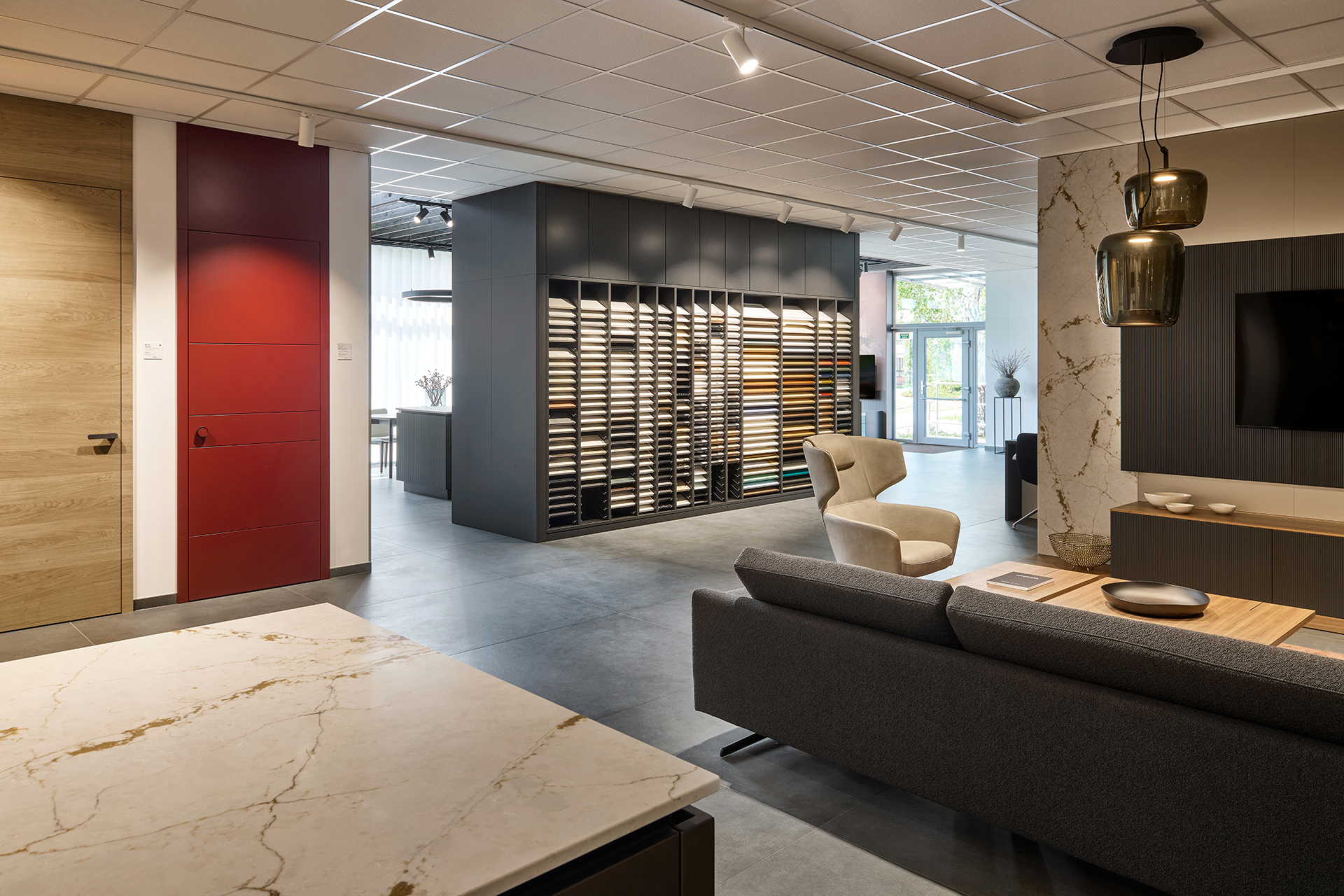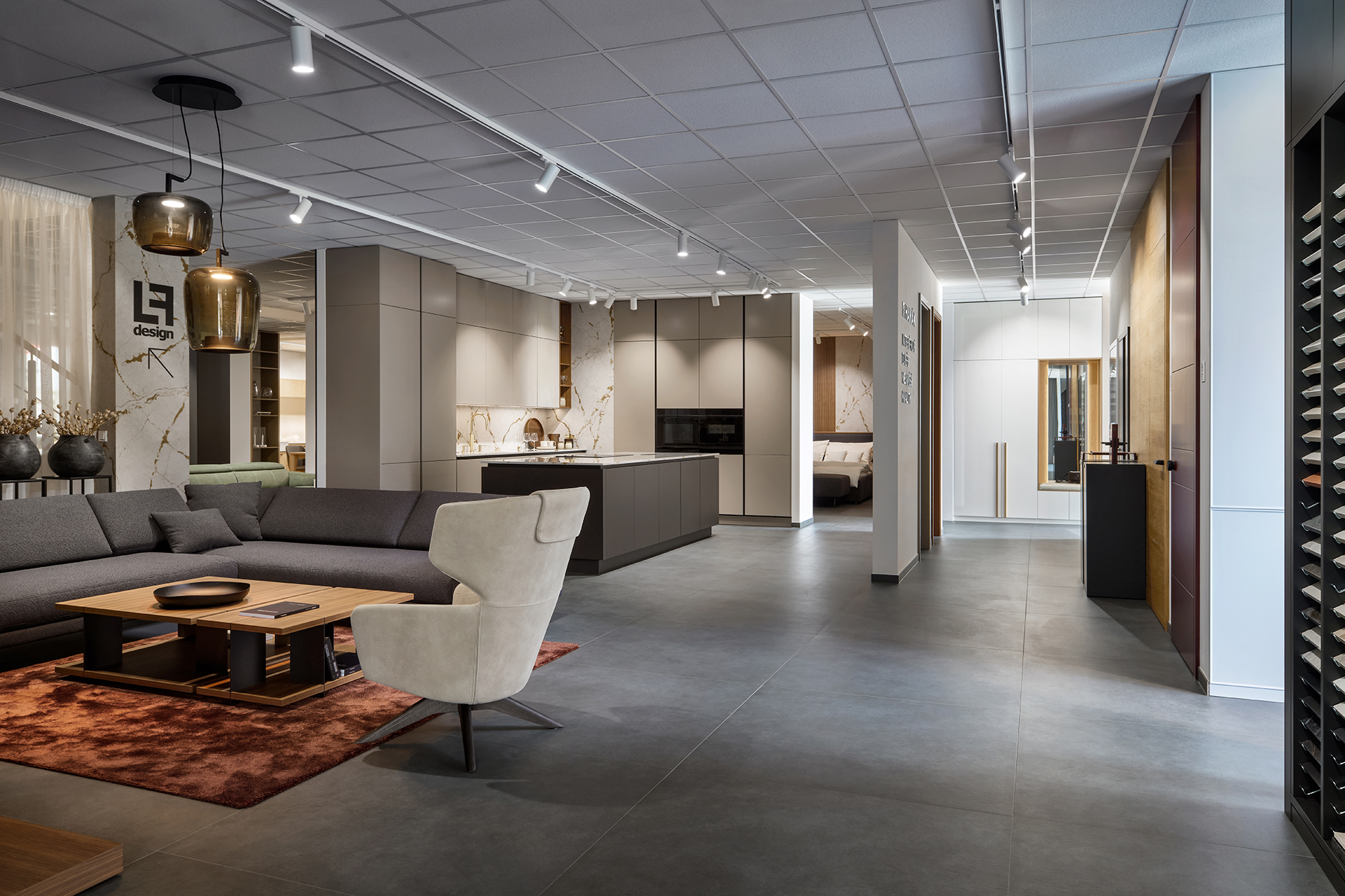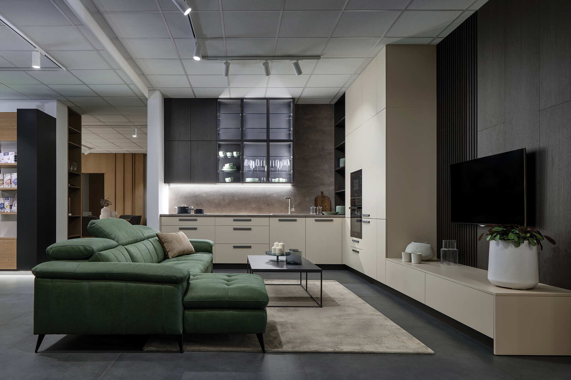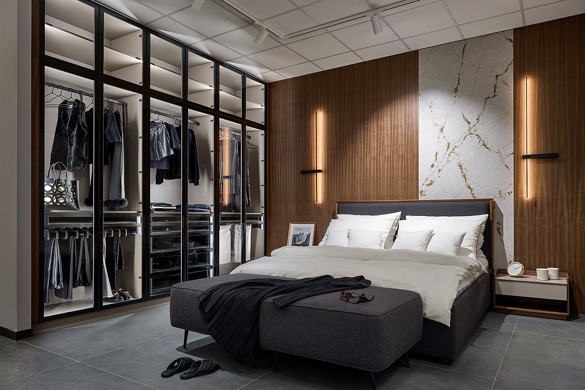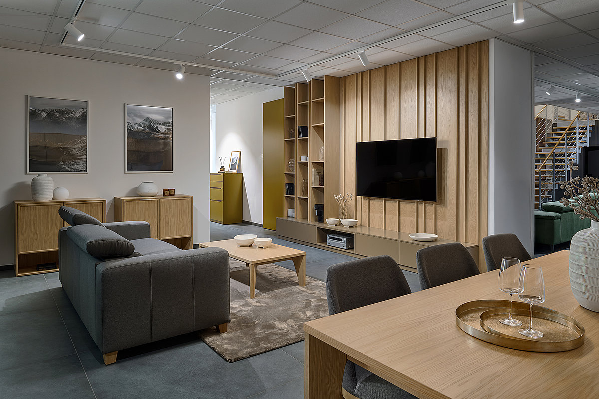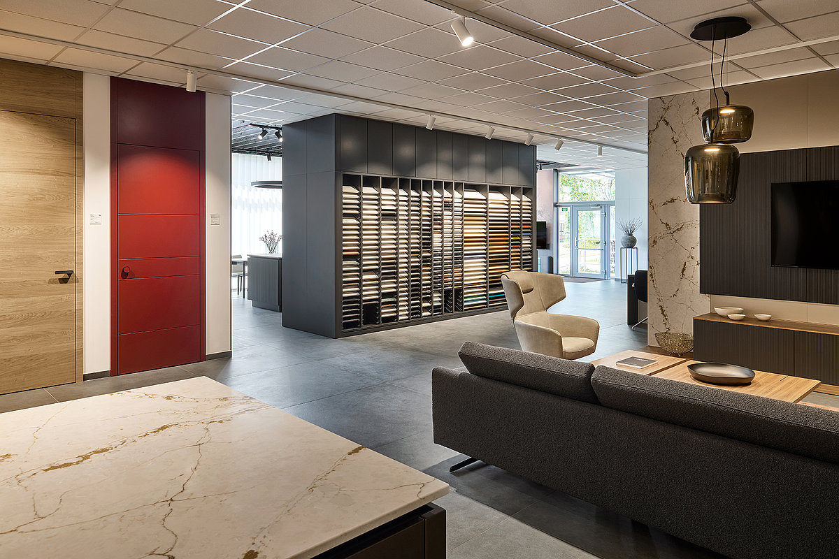 Na ploše plné inspirace vás čekají ukázky kompletně zařízených interiérů – od kuchyní přes obývací pokoje a šatny až po interiérové dveře. Uvidíte ucelené sestavy, precizní detaily i aktuální kolekce barev a materiálů, které vám pomohou najít ideální kombinaci pro váš domov.