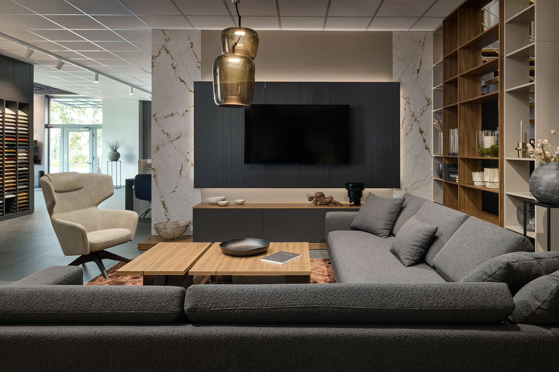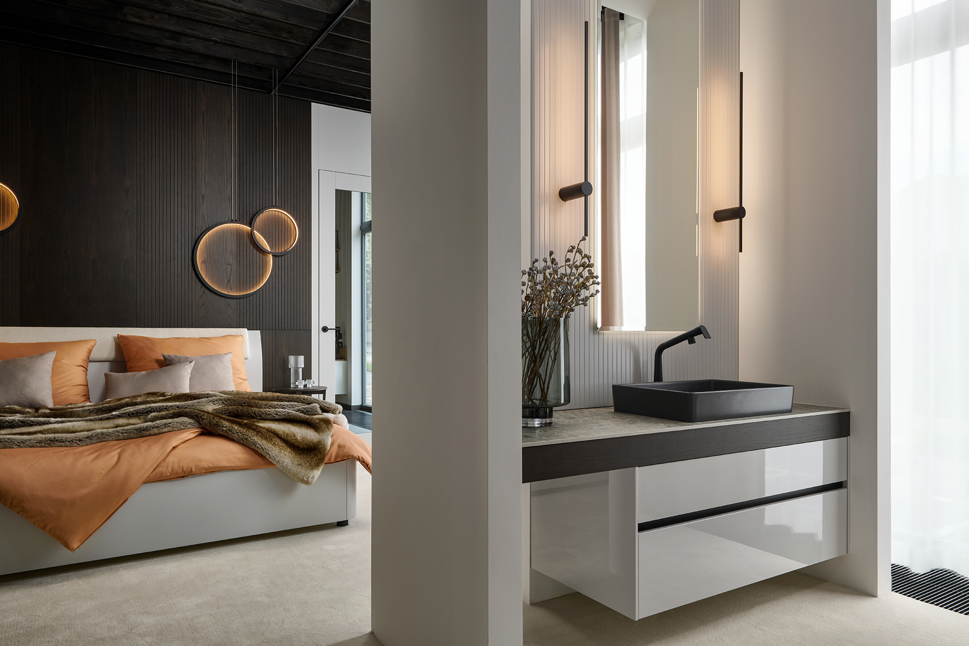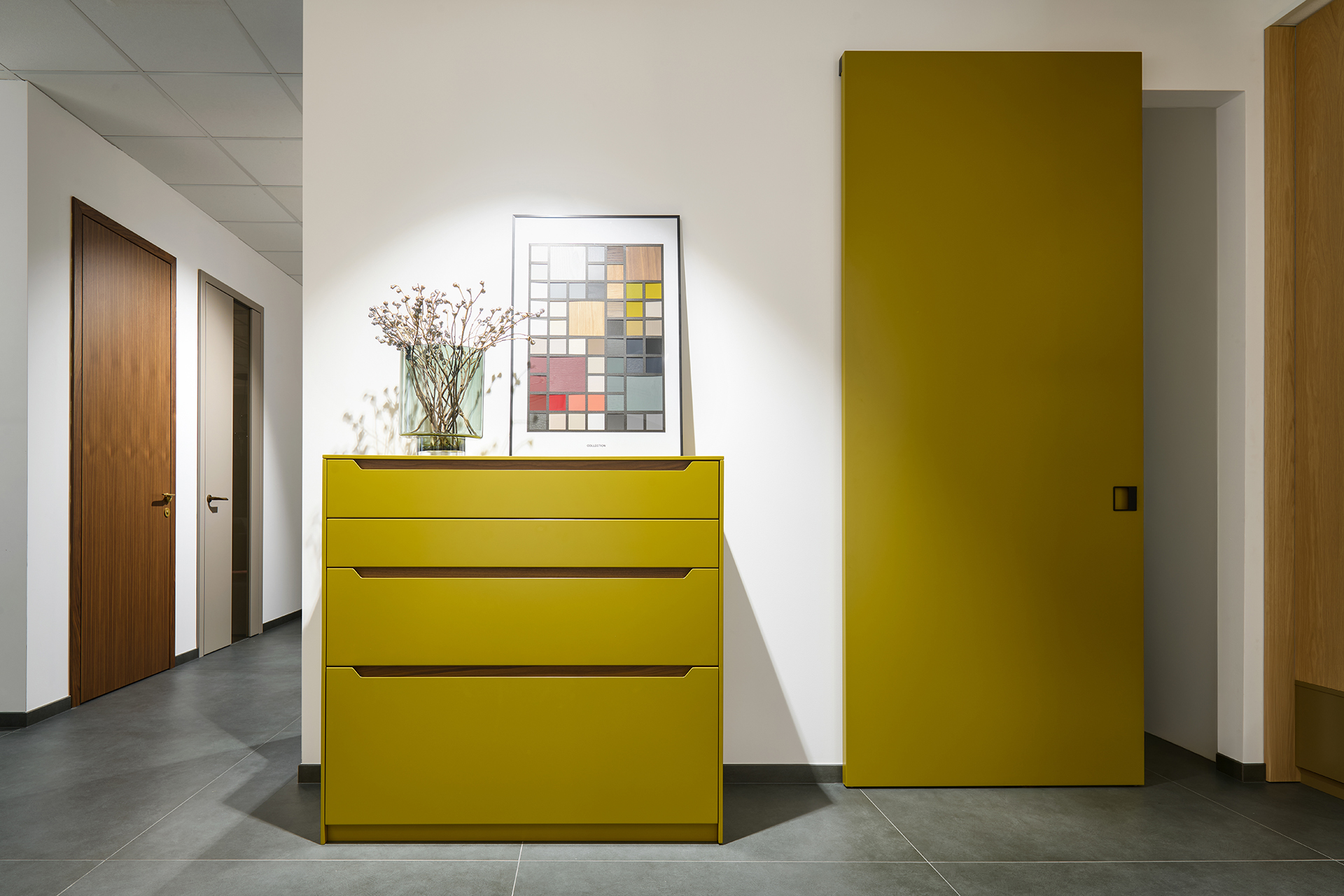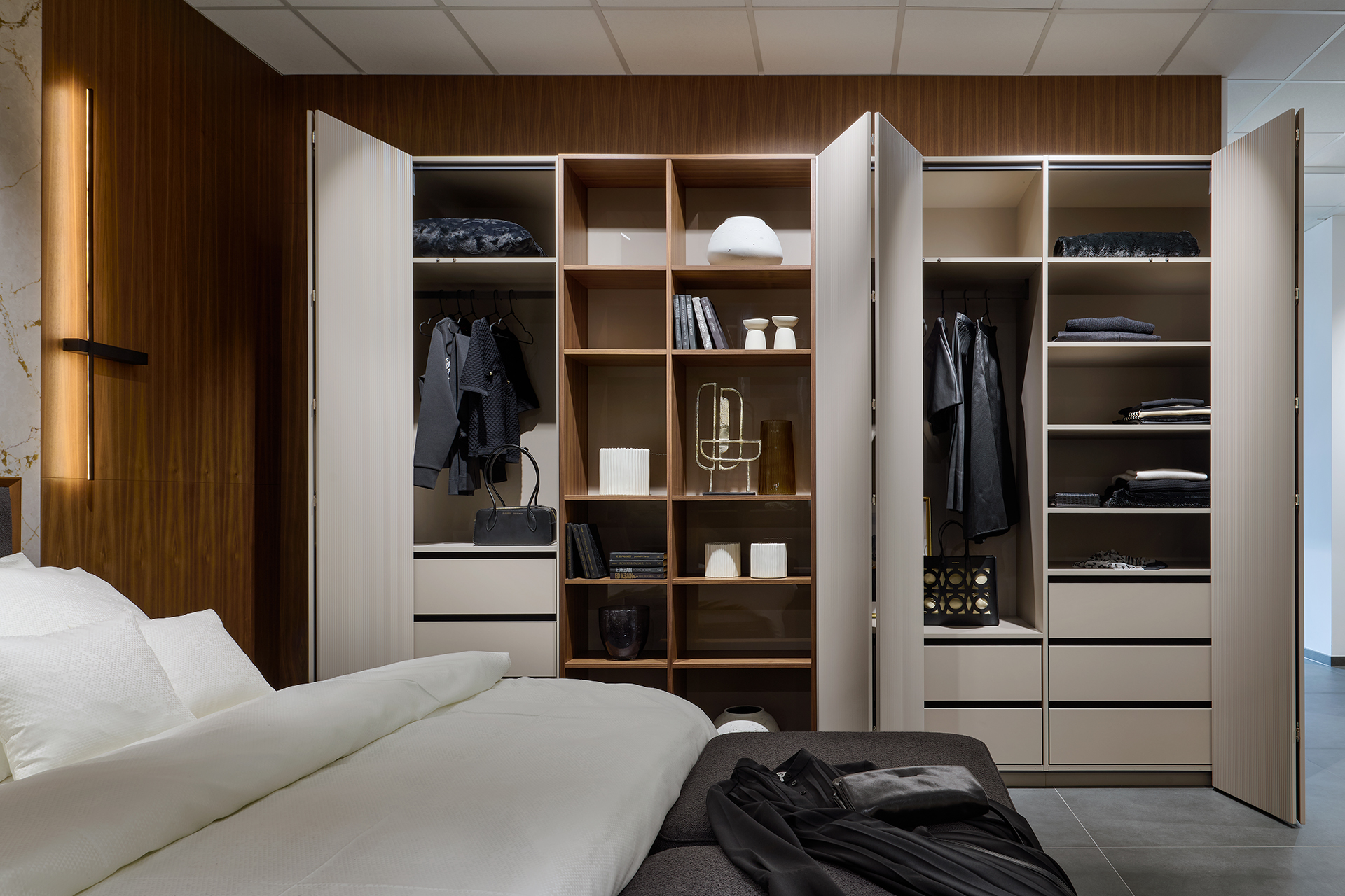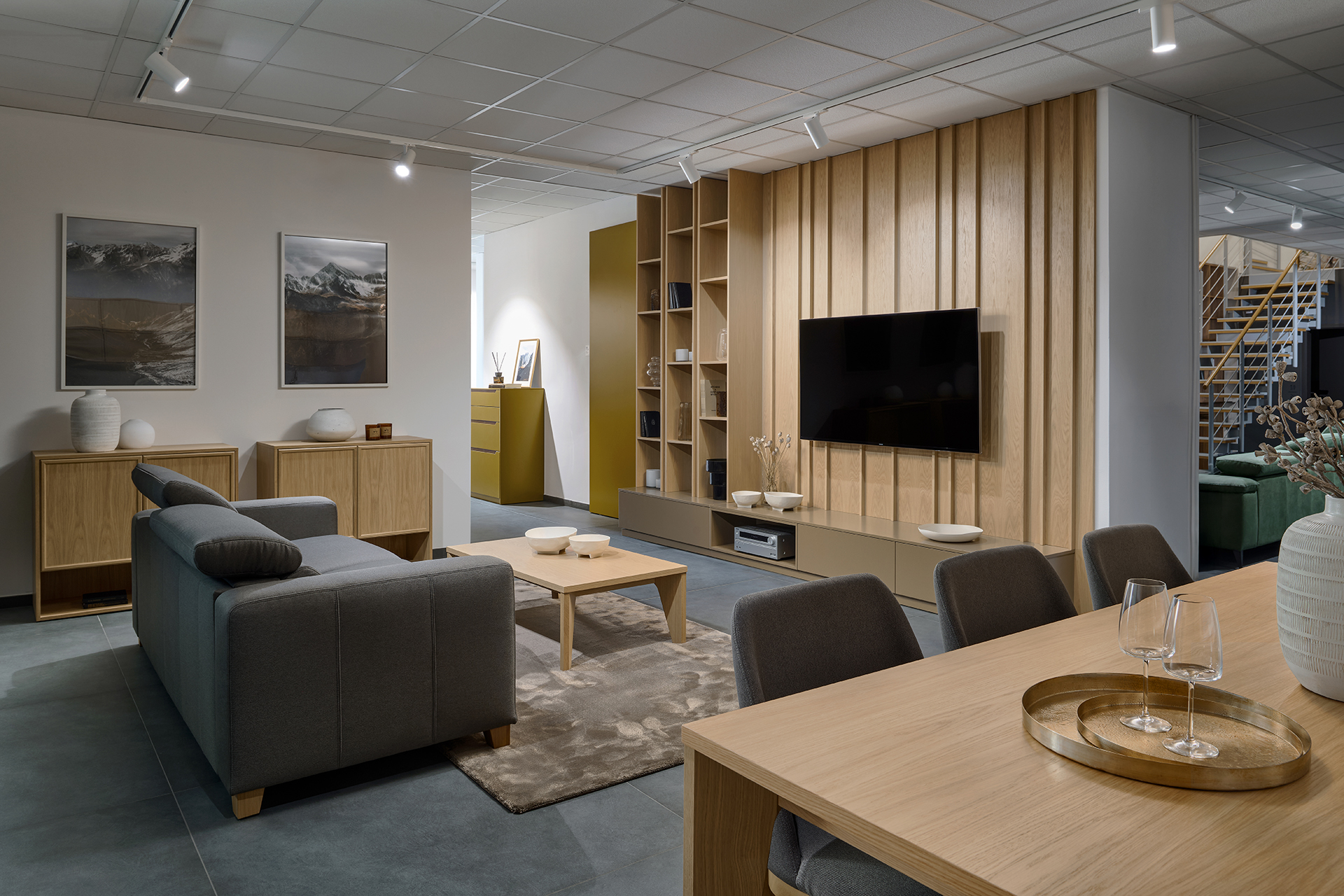 Na ploše plné inspirace vás čekají ukázky kompletně zařízených interiérů – od kuchyní přes obývací pokoje a šatny až po interiérové dveře. Uvidíte ucelené sestavy, precizní detaily i aktuální kolekce barev a materiálů, které vám pomohou najít ideální kombinaci pro váš domov.