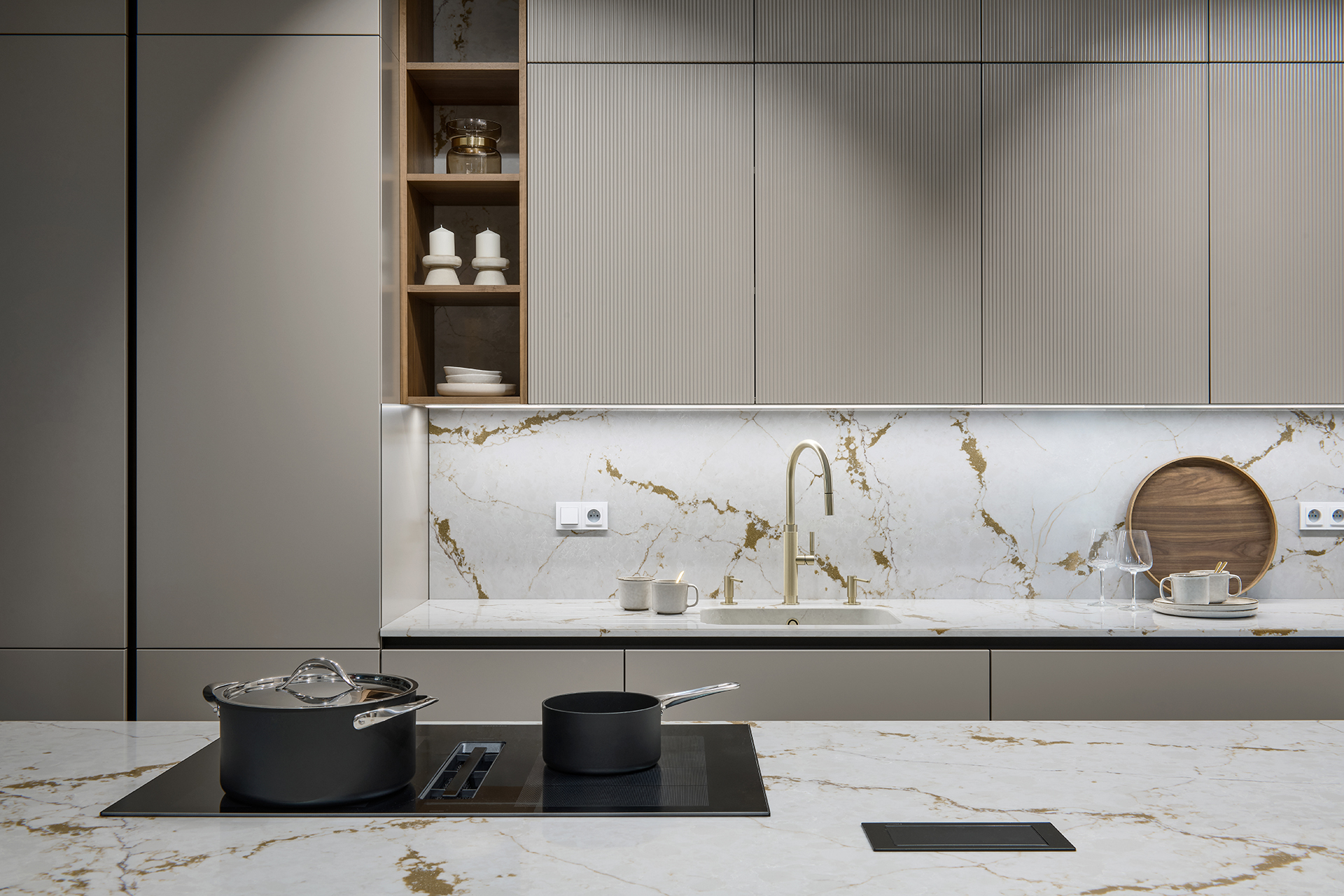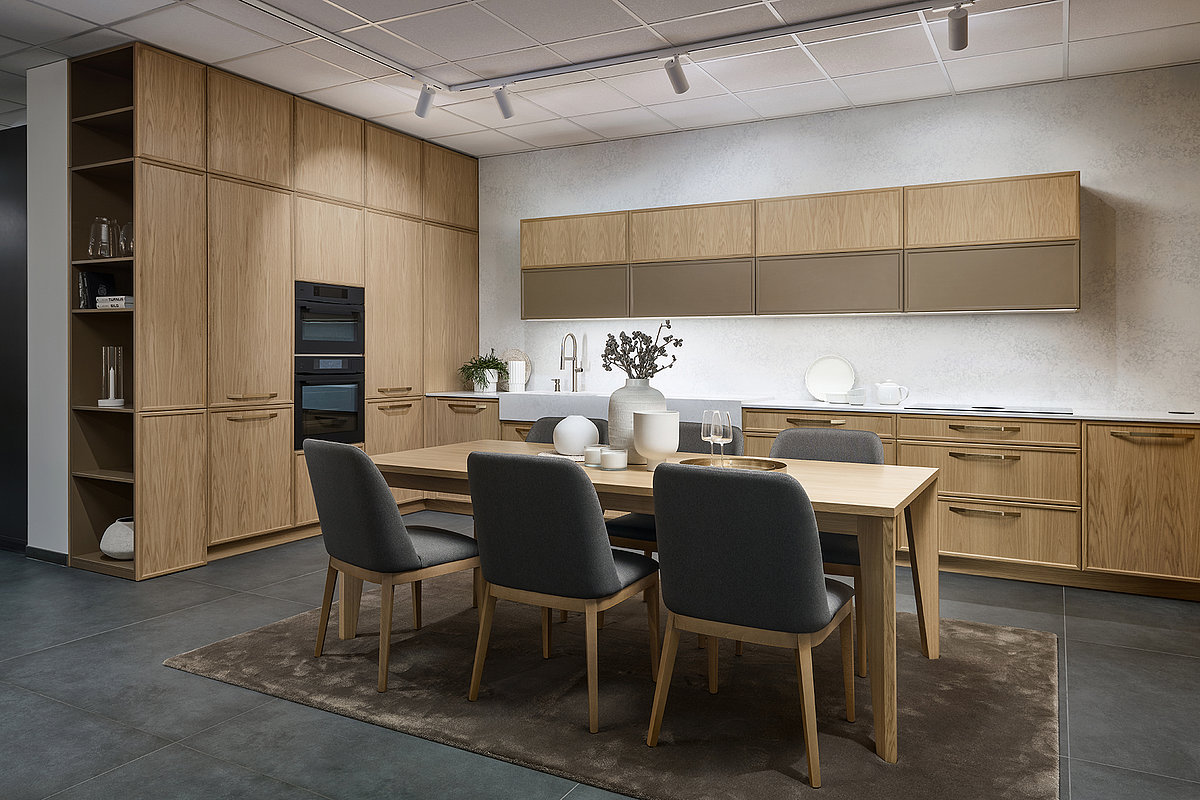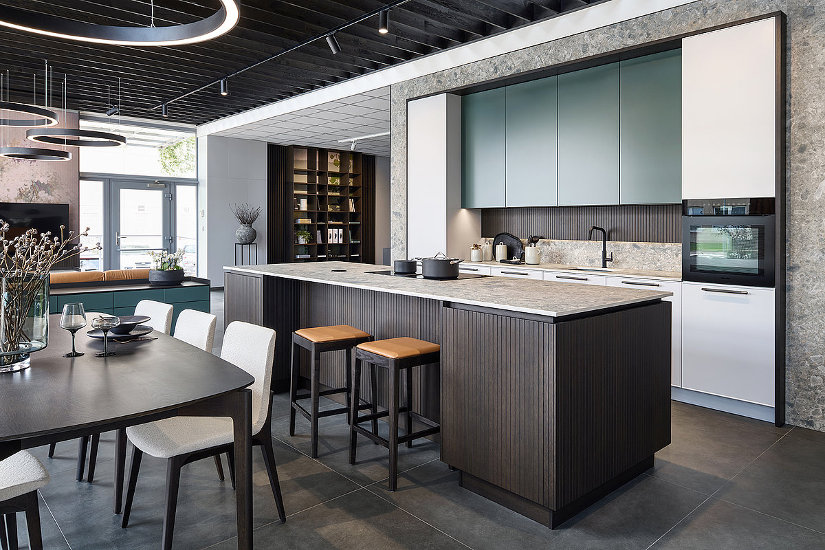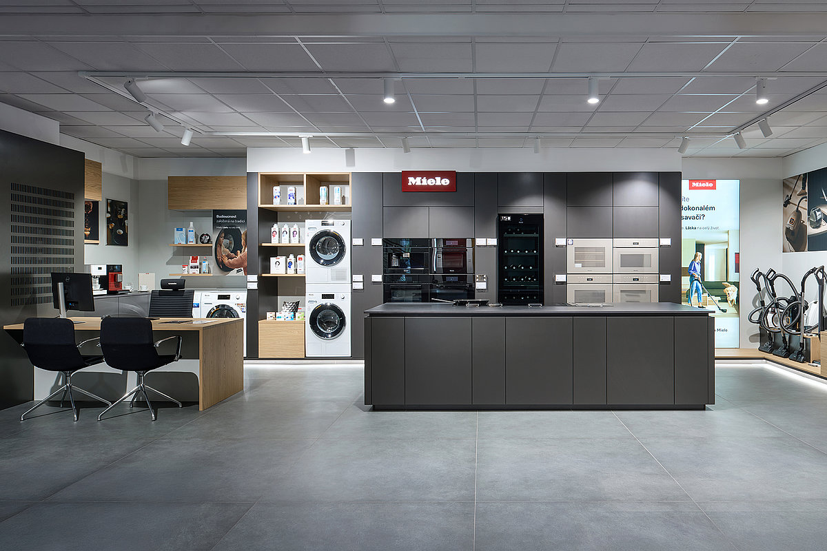 Součástí showroomu jsou také prémiové spotřebiče značky Miele, které jsou plně zapojené a funkčně předvedené v našich kuchyních, které perfektně doplňují náš přístup k interiéru jako celku.