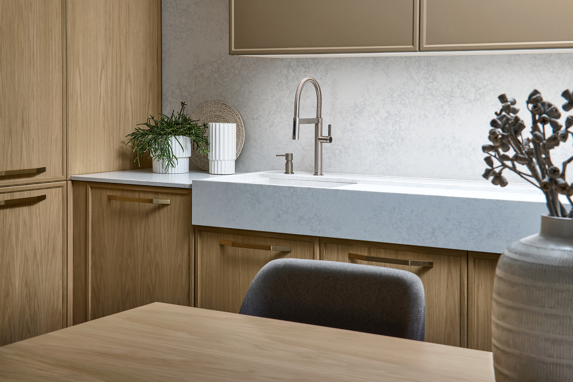 Na první pohled vás jistě zaujme originální design kuchyně WAVE v odstínu Cashmere, model MIAMI s precizním drážkováním nebo dveře MAGIC s integrovanou kolejnicí.