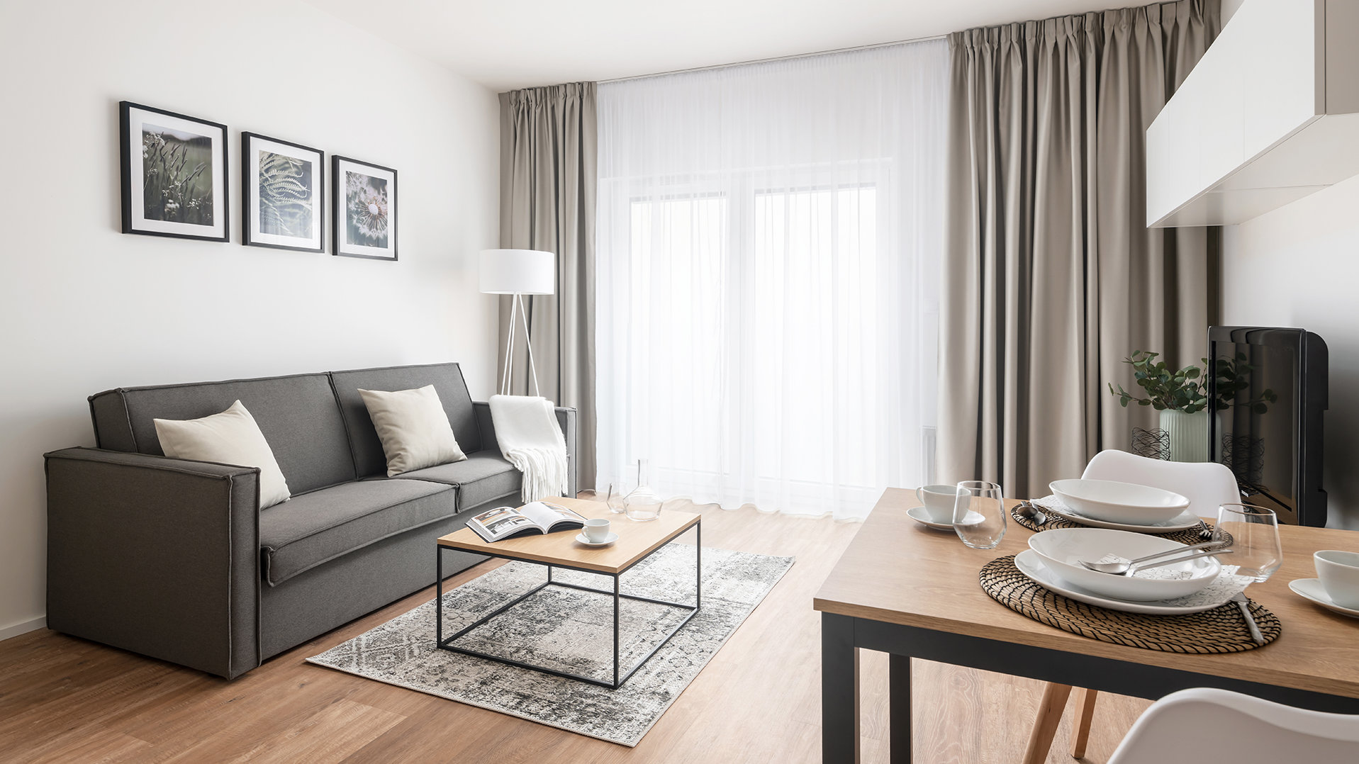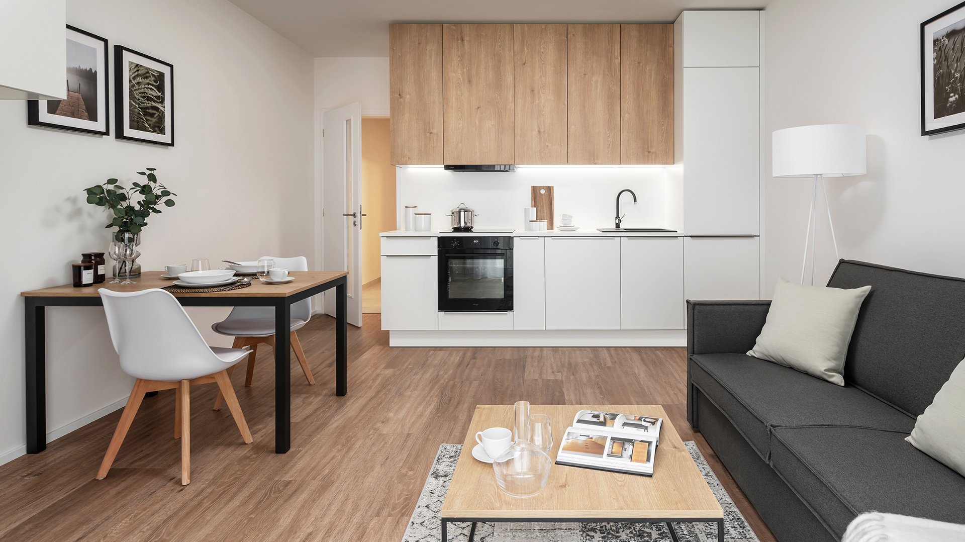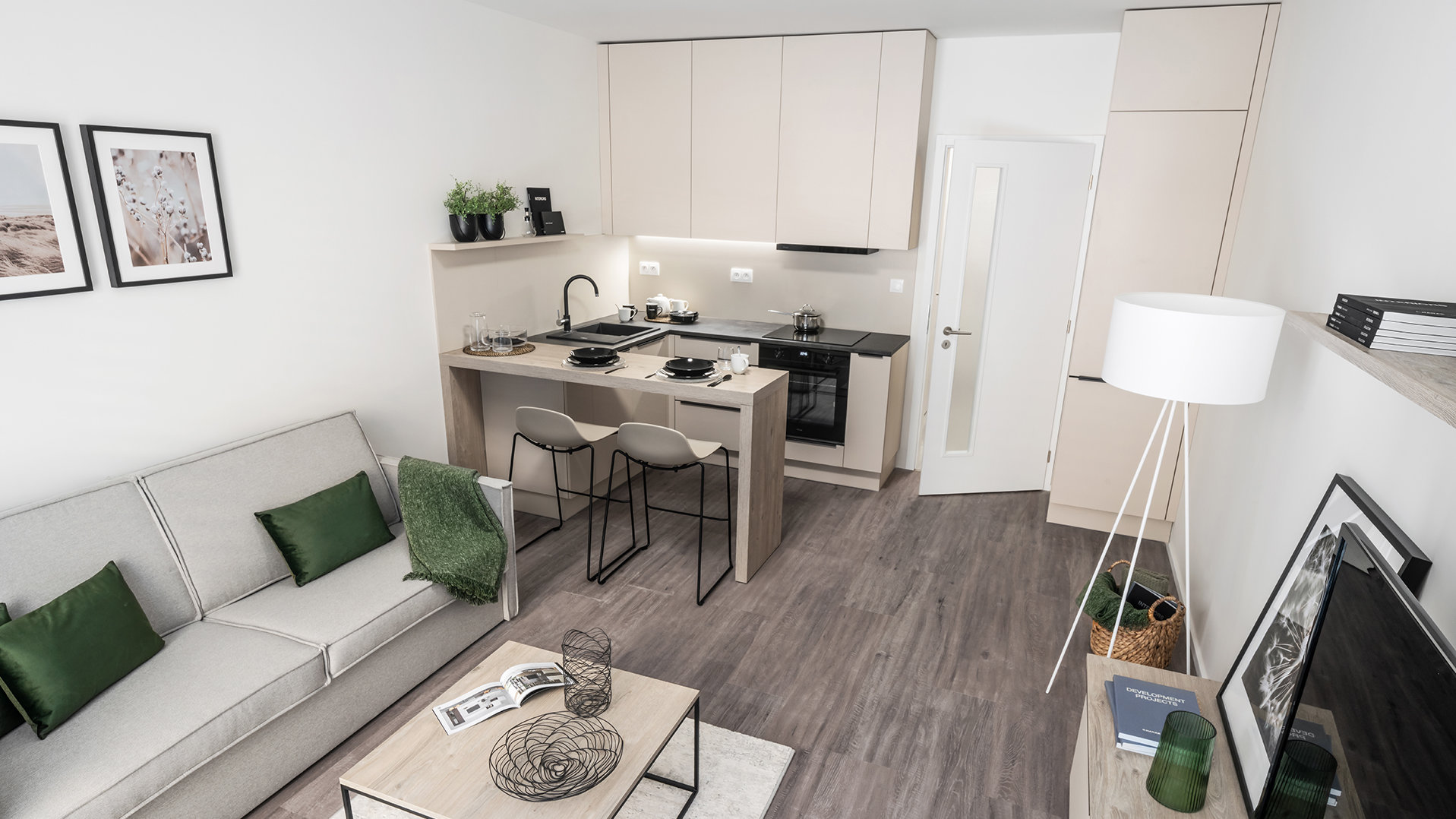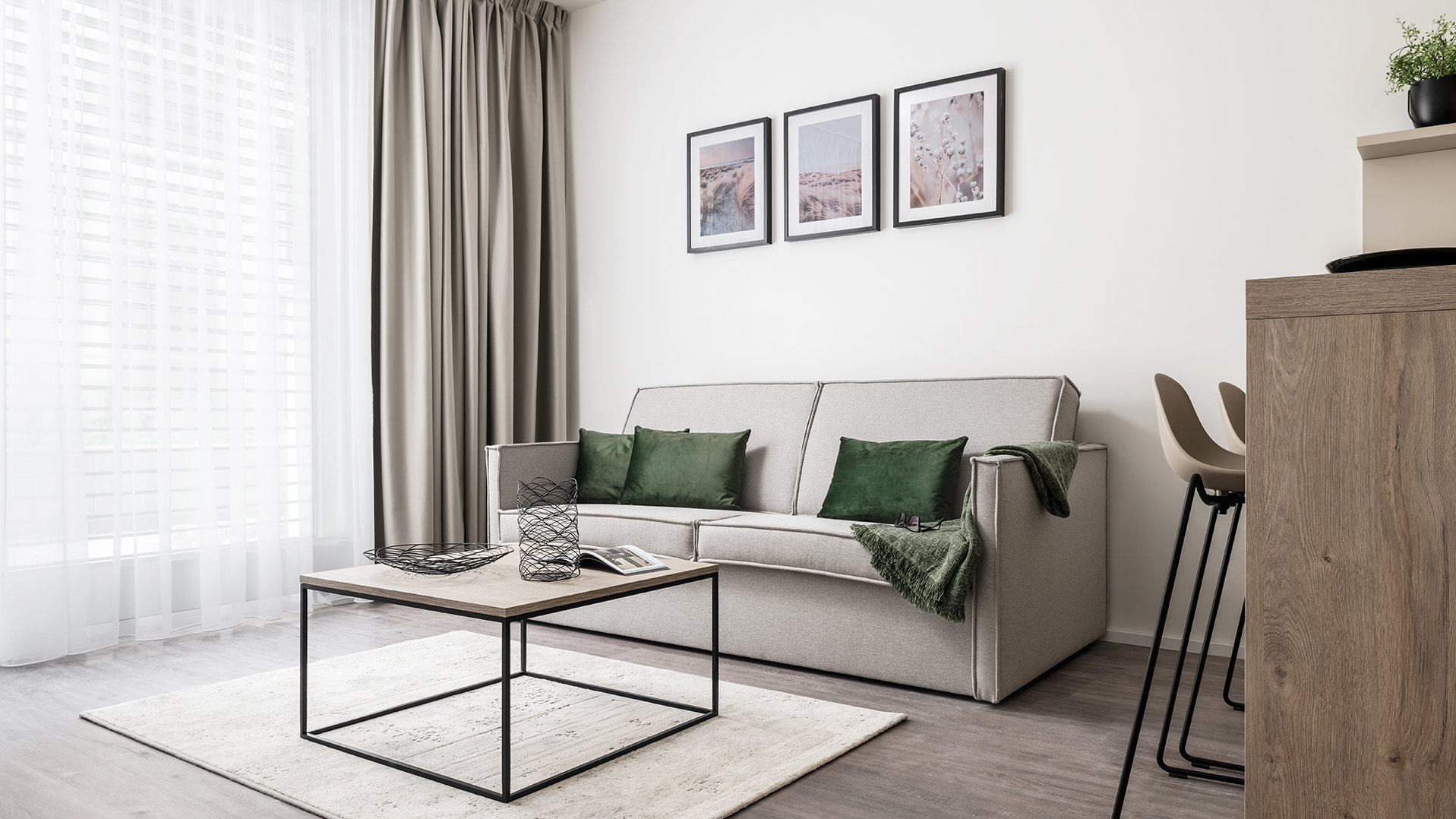 Complete turnkey interiors corresponding to rental housing apartments. Under our direction, the individual interiors were also fully equipped and decorated, including bedding and kitchen interiors.