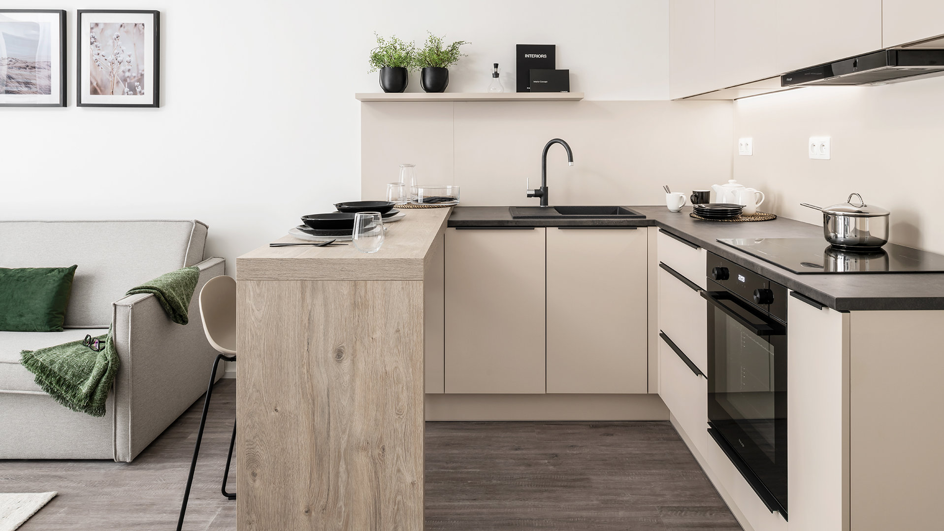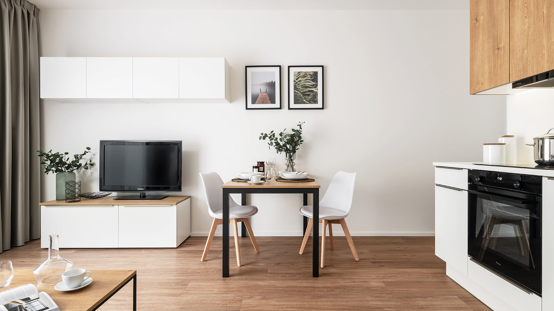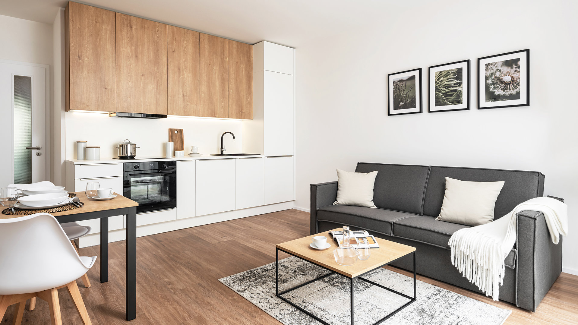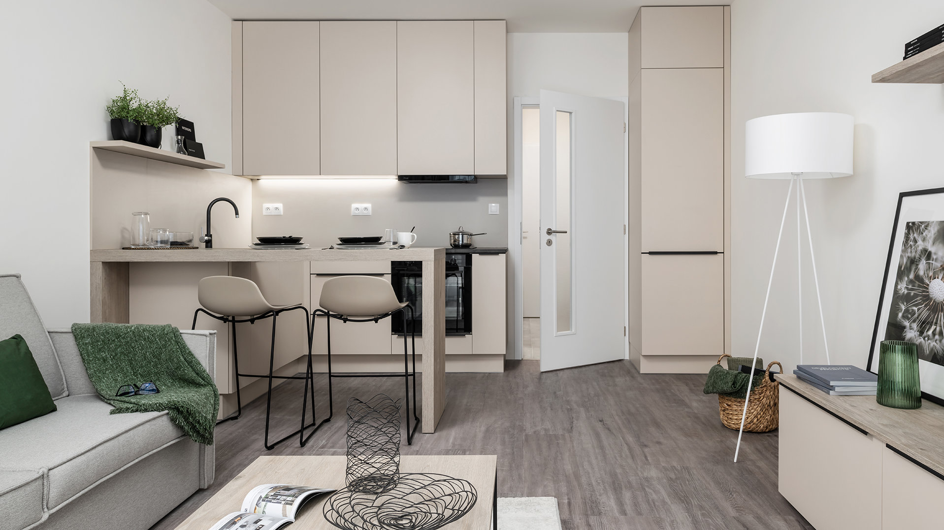 Complete turnkey interiors corresponding to rental housing apartments. Under our direction, the individual interiors were also fully equipped and decorated, including bedding and kitchen interiors.