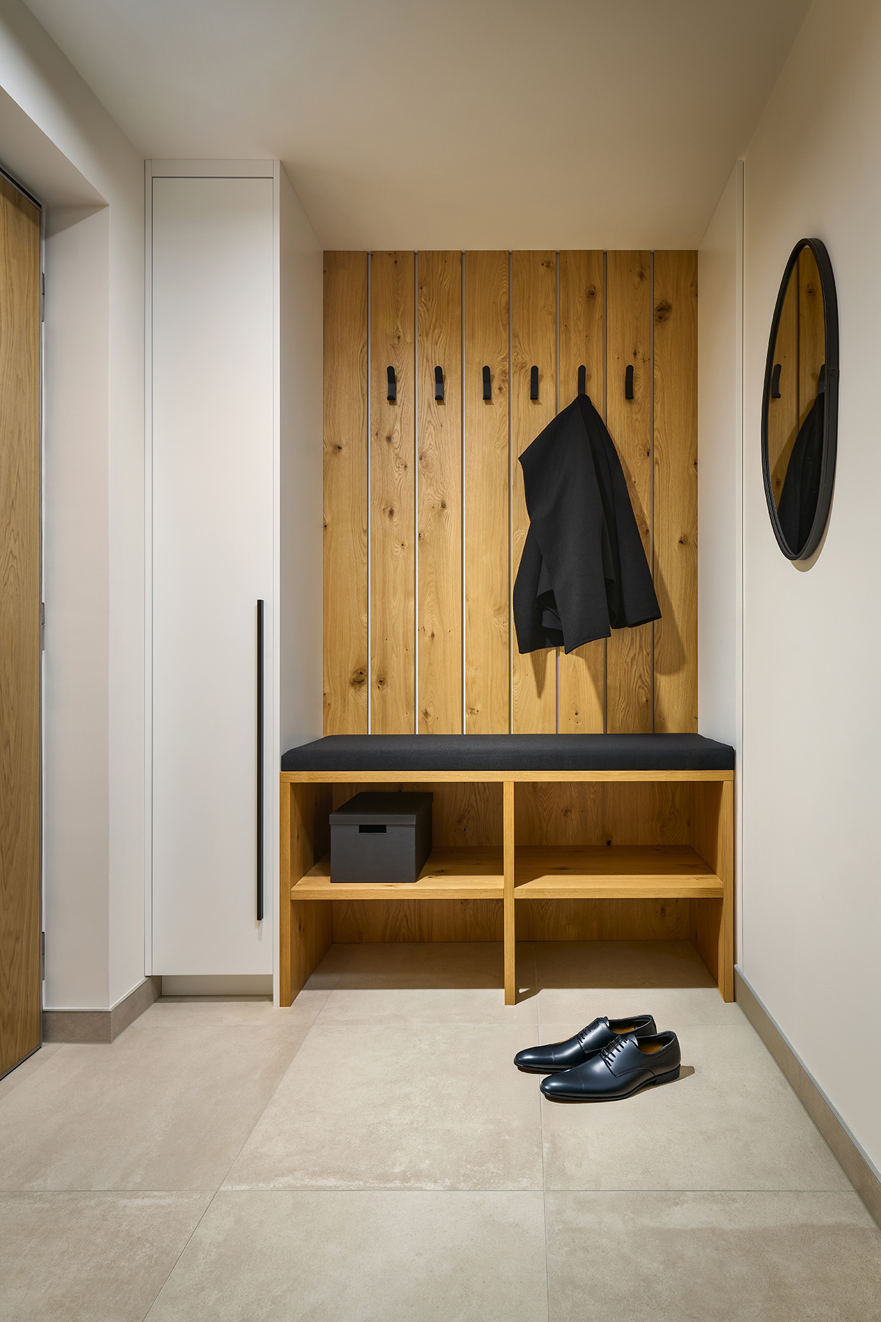 From the entrance hall with its subtle natural accents to the fresh, compact bathroom with integrated washing machine, the entire interior has been designed to be balanced, functional, and comfortable. Every corner offers a visual and sensory experience and emphasizes the harmony of the entire space.