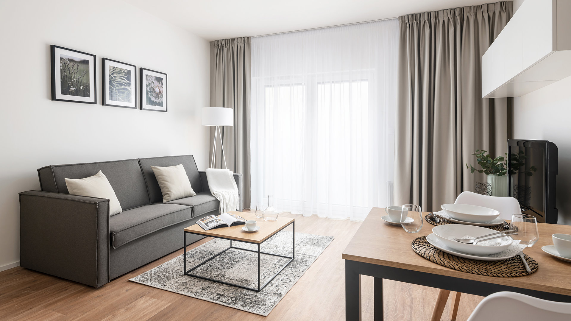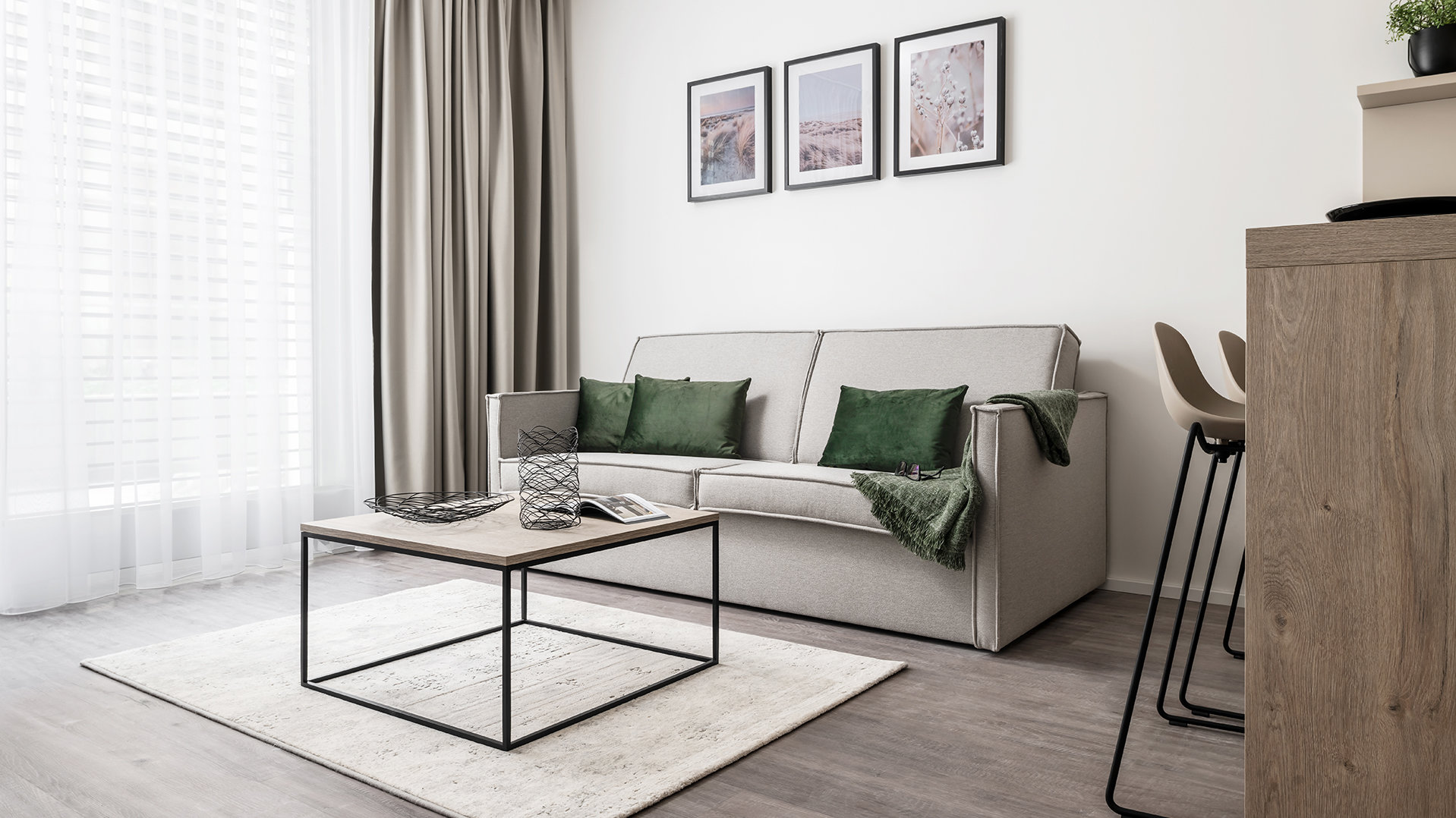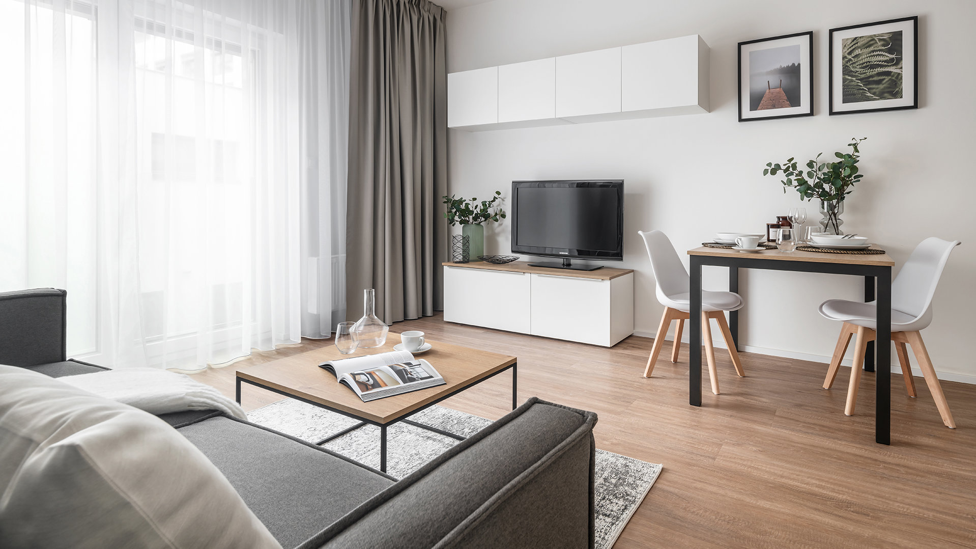 Réalisation d’aménagements intérieurs complets clé en main correspondant aux besoins des logements locatifs. Sous notre direction, les intérieurs individuels ont été équipés de tout le mobilier et de décorations, y compris la literie et les équipements de cuisine.