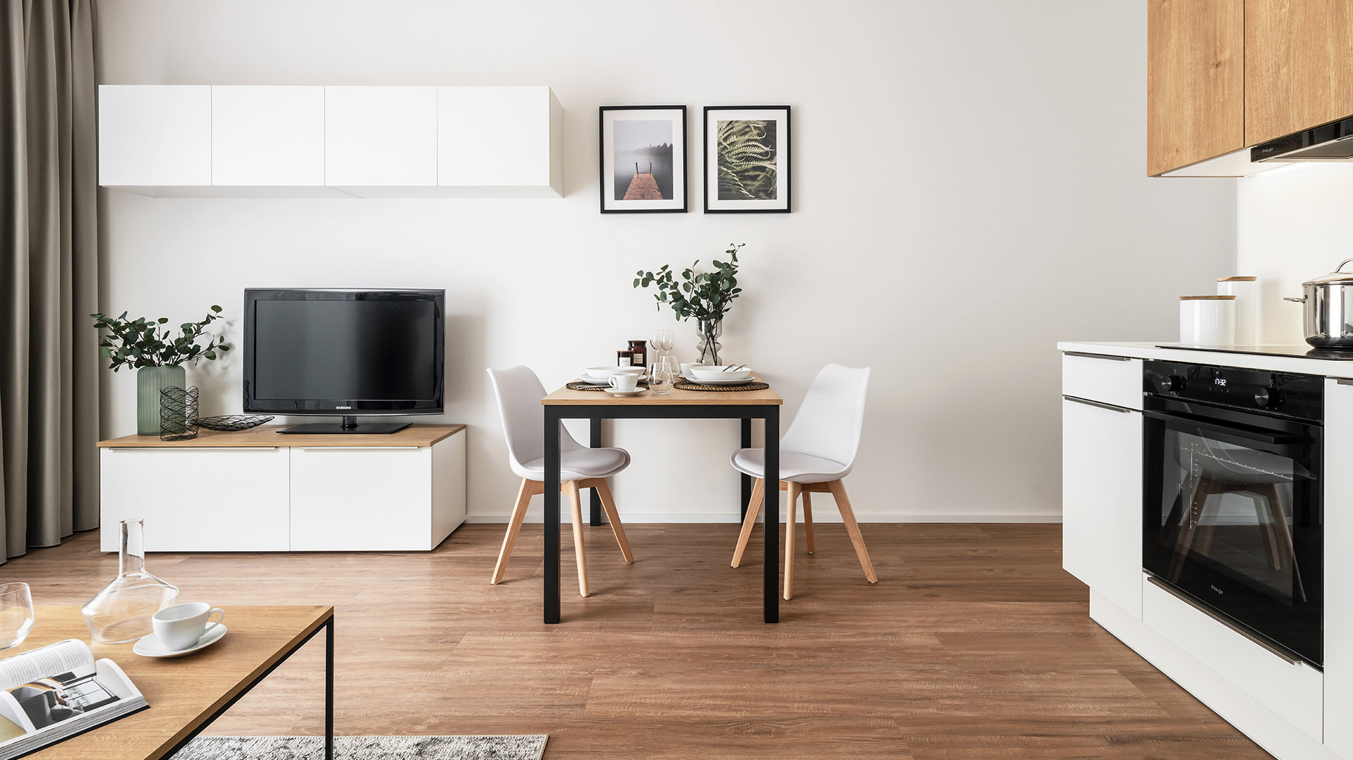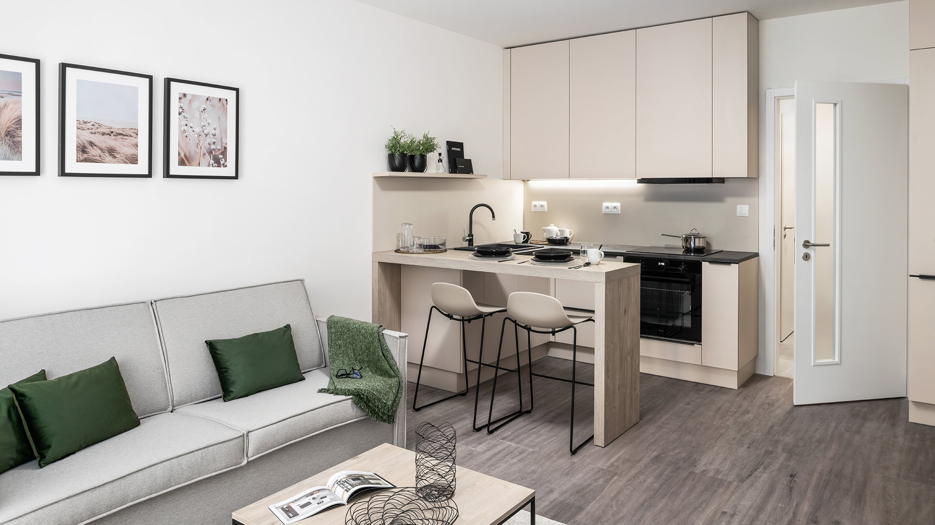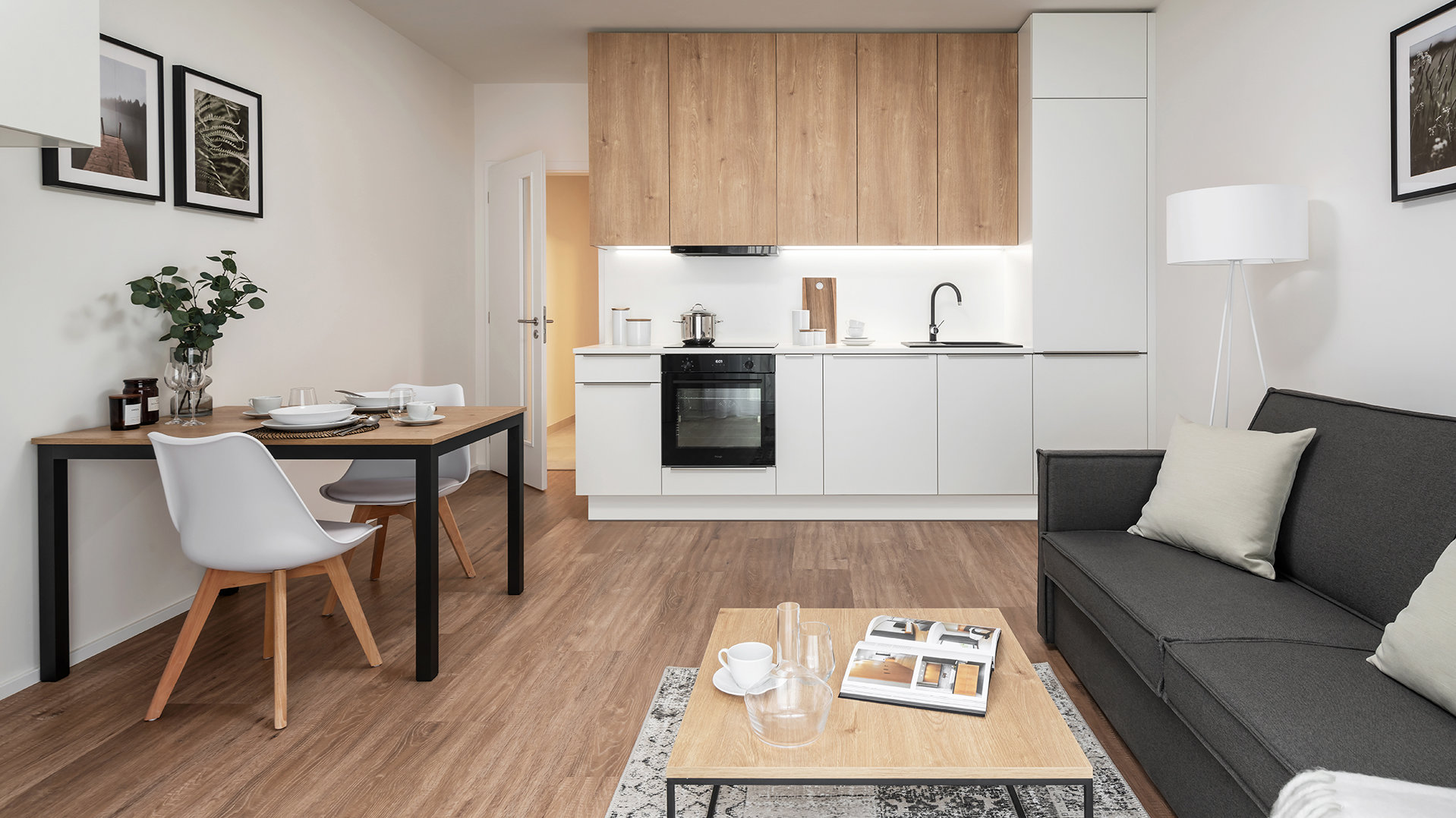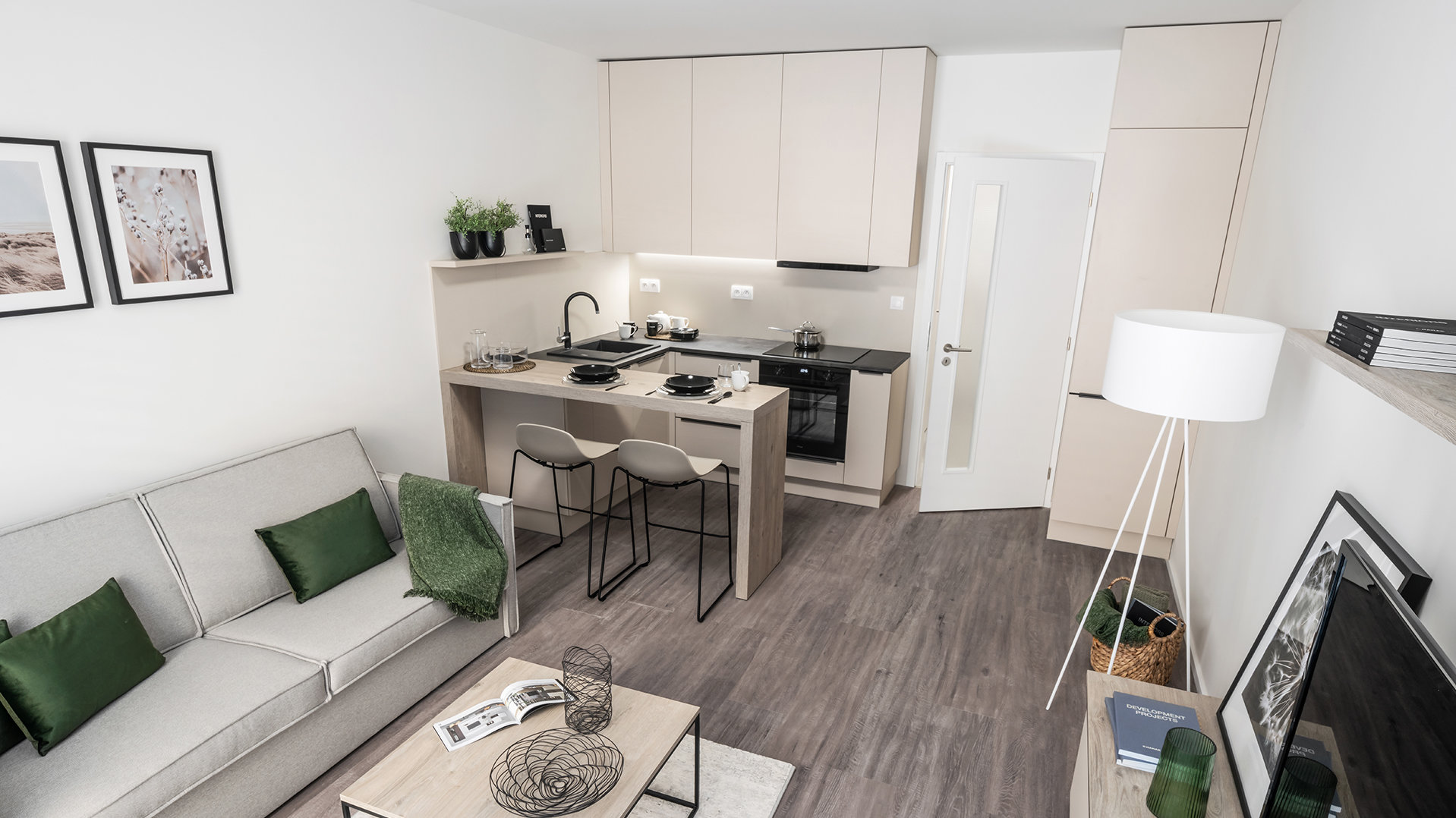 Réalisation d’aménagements intérieurs complets clé en main correspondant aux besoins des logements locatifs. Sous notre direction, les intérieurs individuels ont été équipés de tout le mobilier et de décorations, y compris la literie et les équipements de cuisine.