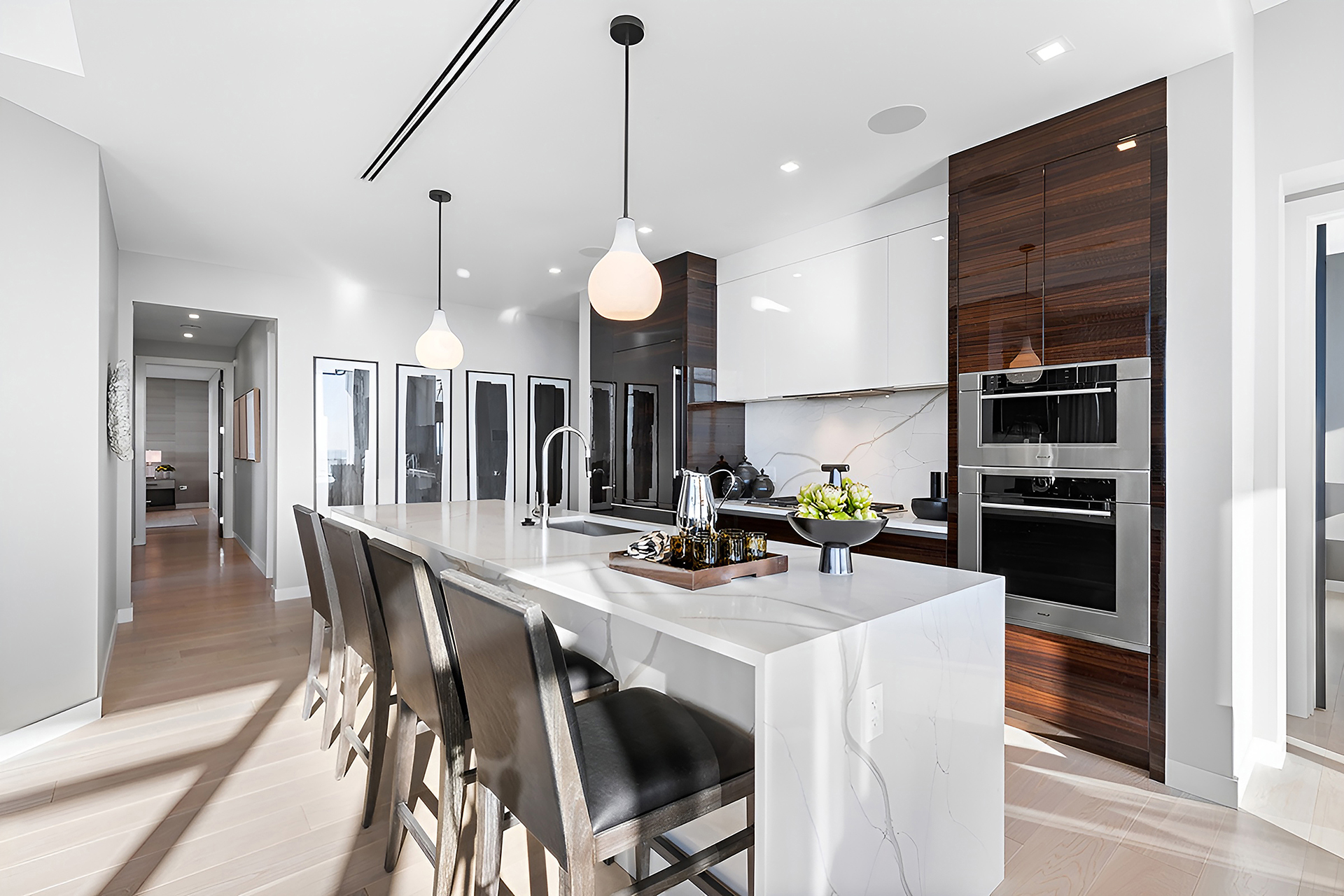 Une résidence de prestige se doit d’être dotée d’un intérieur de luxe. Notre entreprise a conçu et livré sur mesure un intérieur complet et parfaitement coordonné, qui sert désormais d’appartement témoin pour les clients les plus exigeants.