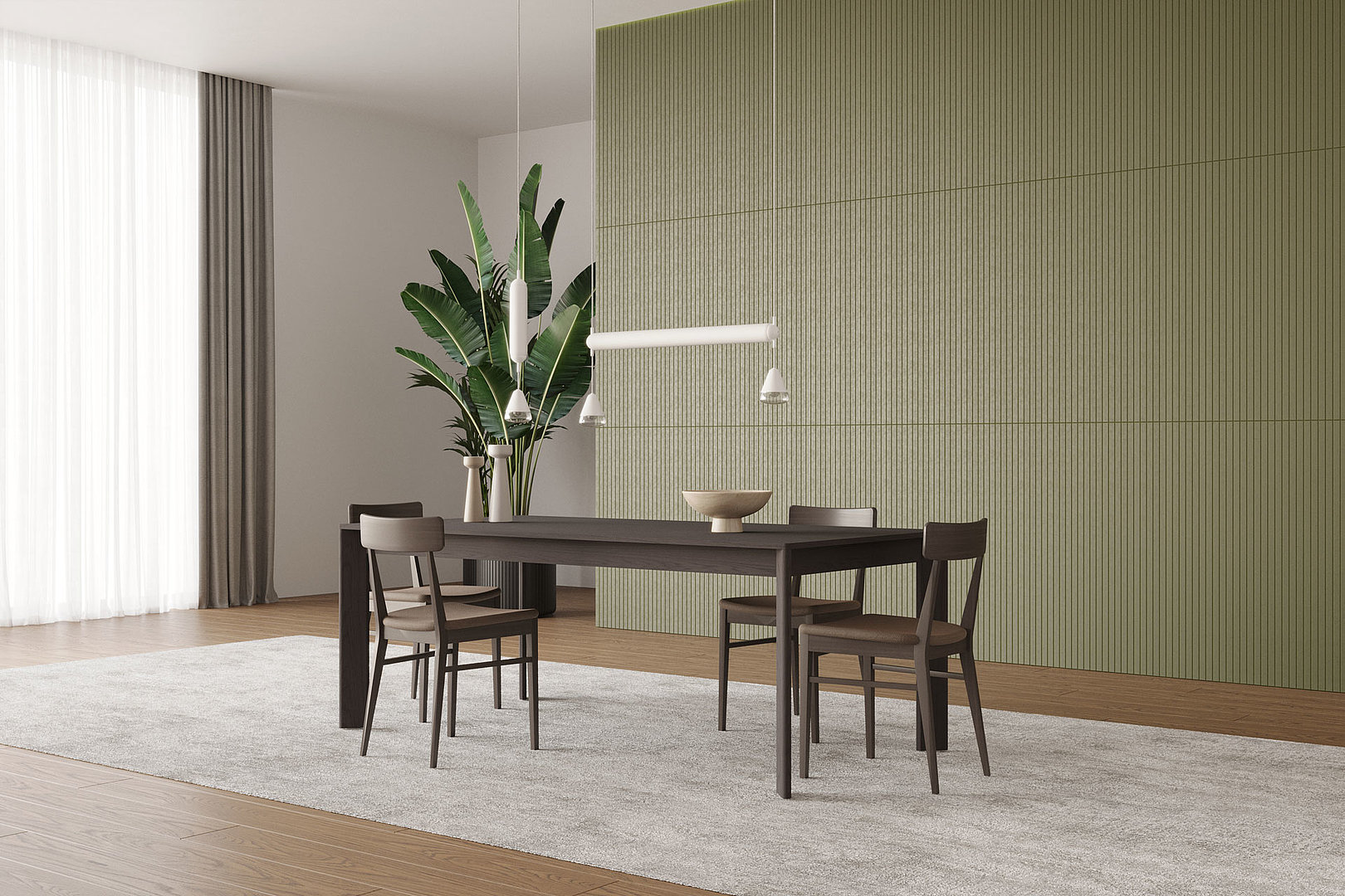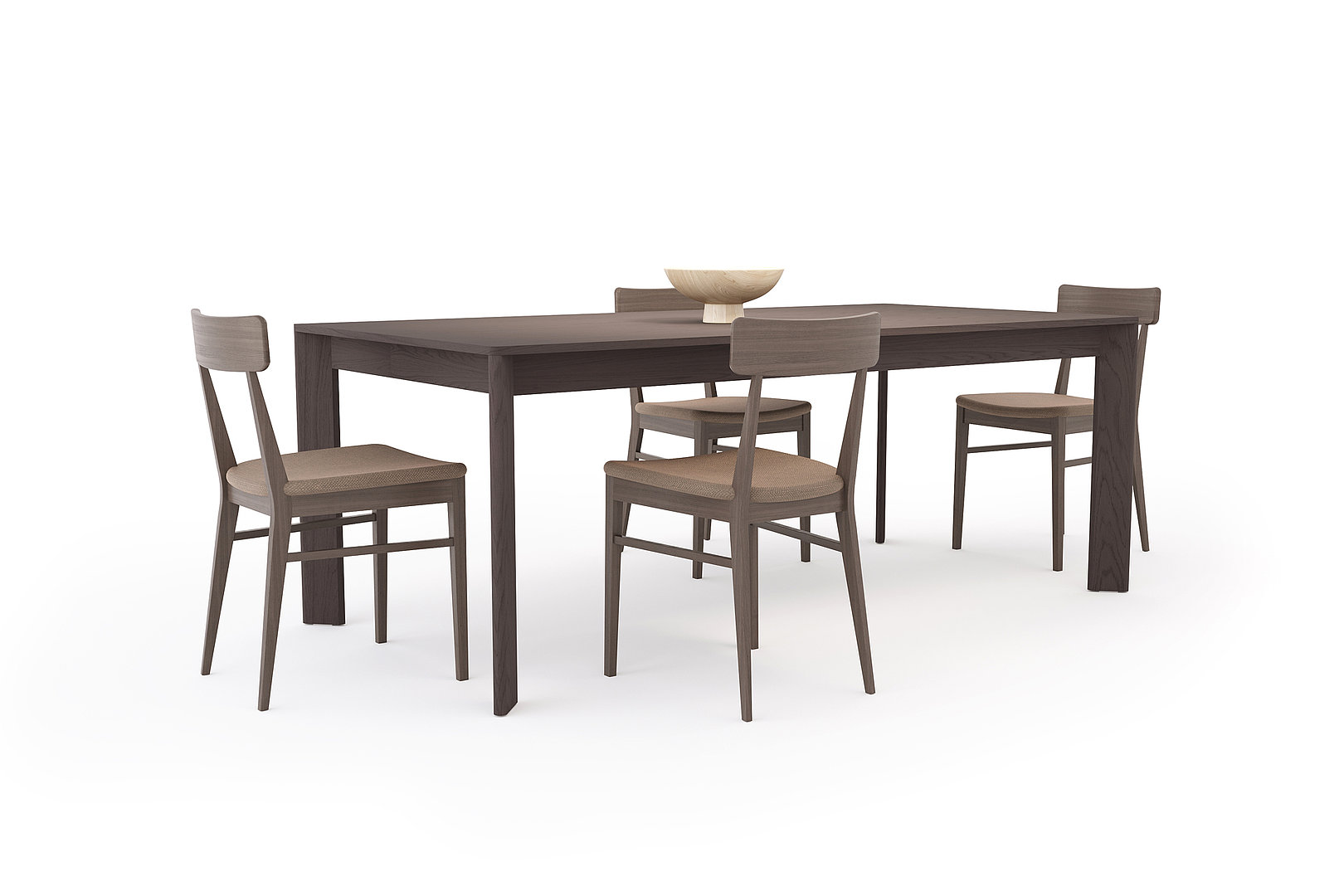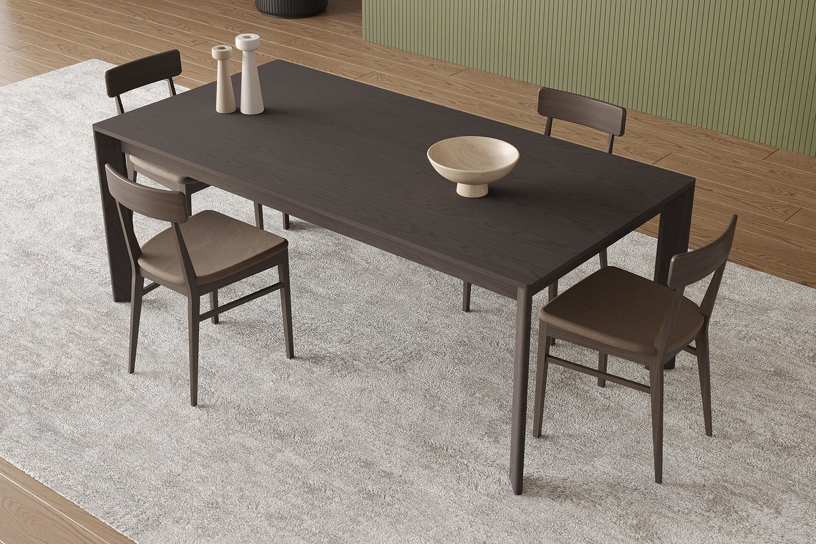 Jídelní stůl vhodný do každého interiéru. Nohy stolu se zaoblením dokonale navazují na stolovou desku a jejich zkosené provedení navíc dává vyniknout kresbě přírodních dýh.
