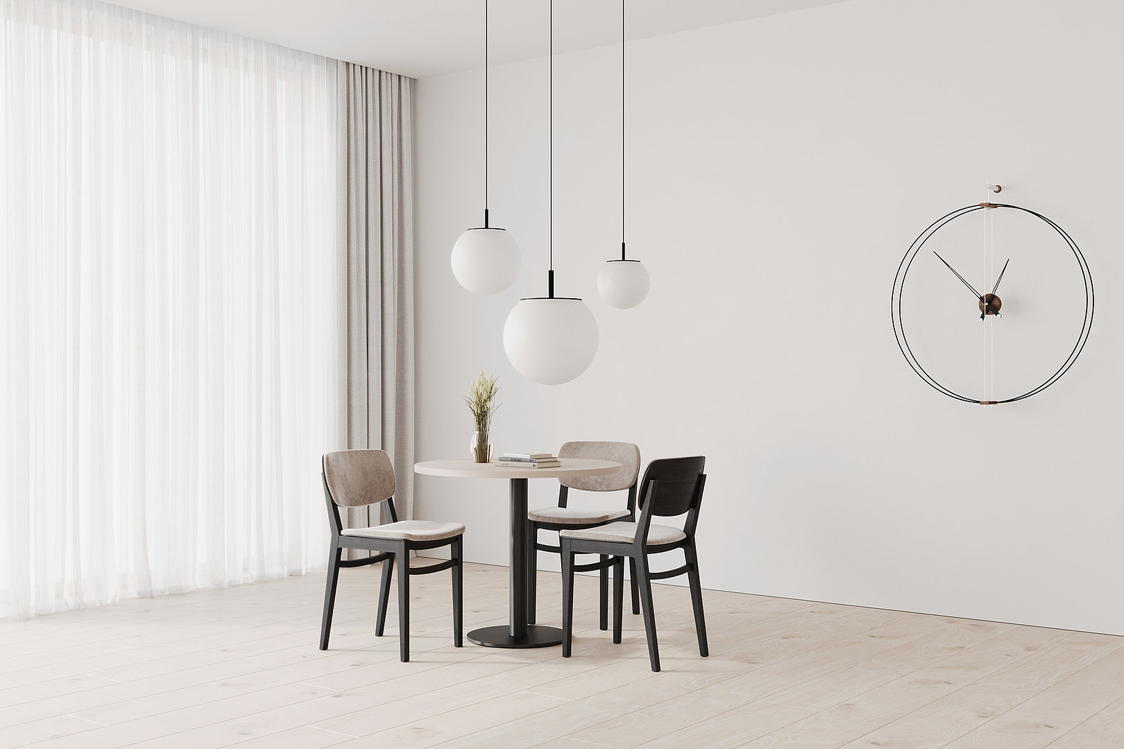 Kulatý jídelní stůl s dominantní centrální kovovou podnoží. Ideální do menších prostor, kde bude naplněn jeho potenciál.