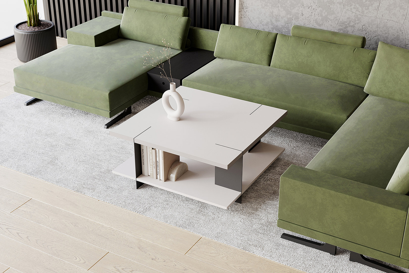 stolku nabízí úložné místo pro dekorační předměty nebo knihy.