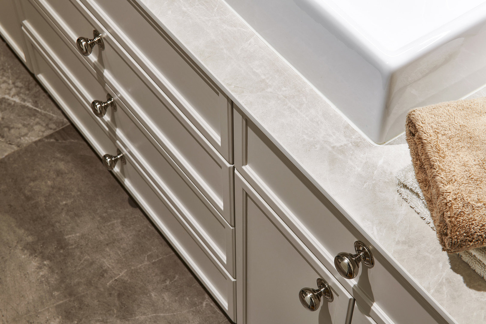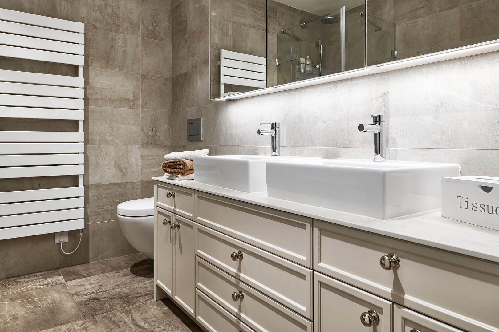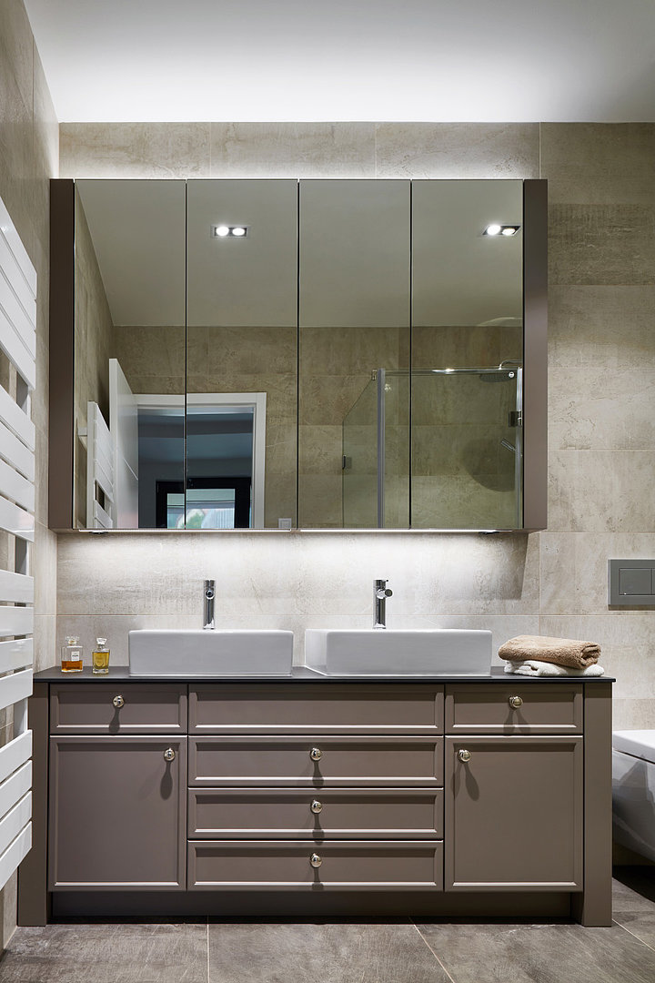 Koupelnová sestava, která se vyznačuje decentním a nadčasovým rámečkem. Nabízí možnost propojení interiérového nábytku s koupelnou ve stejném designu.