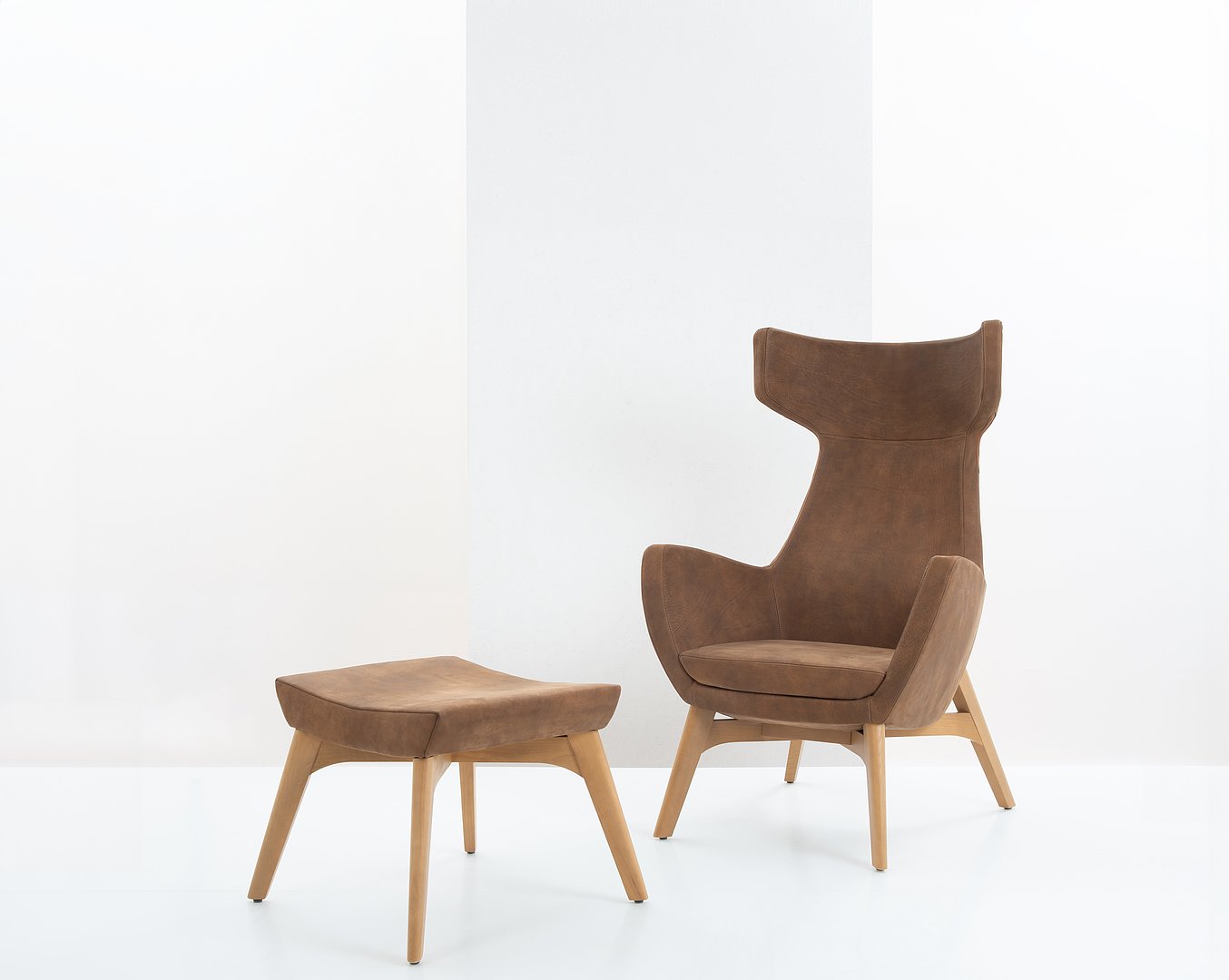 Kolekce MAXI nabízí model křesla i židle, obě varianty jsou dostupné s klasickou dřevěnou podnoží nebo v otočné verzi. Otočné křeslo je dostupné s dřevěnou i kovovou konstrukcí a lze k němu přidat podnožku ve stejném provedení.