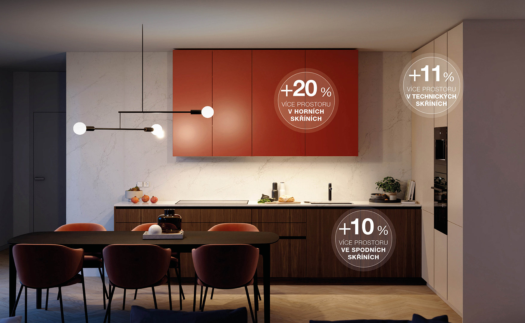 Naše nejnovější konstrukční řešení HANÁK ERGONOMY 25, které se propisuje do všech modelů kuchyní a veškerého nábytku HANÁK, poskytuje nejen více prostoru, ale zásadně mění způsob, jakým vnímáme pohodlí a ergonomii.