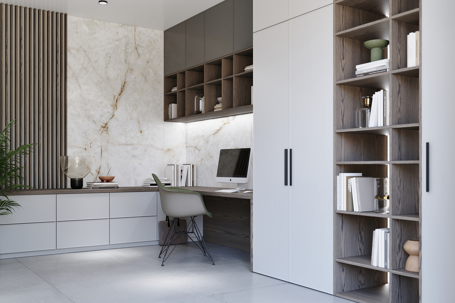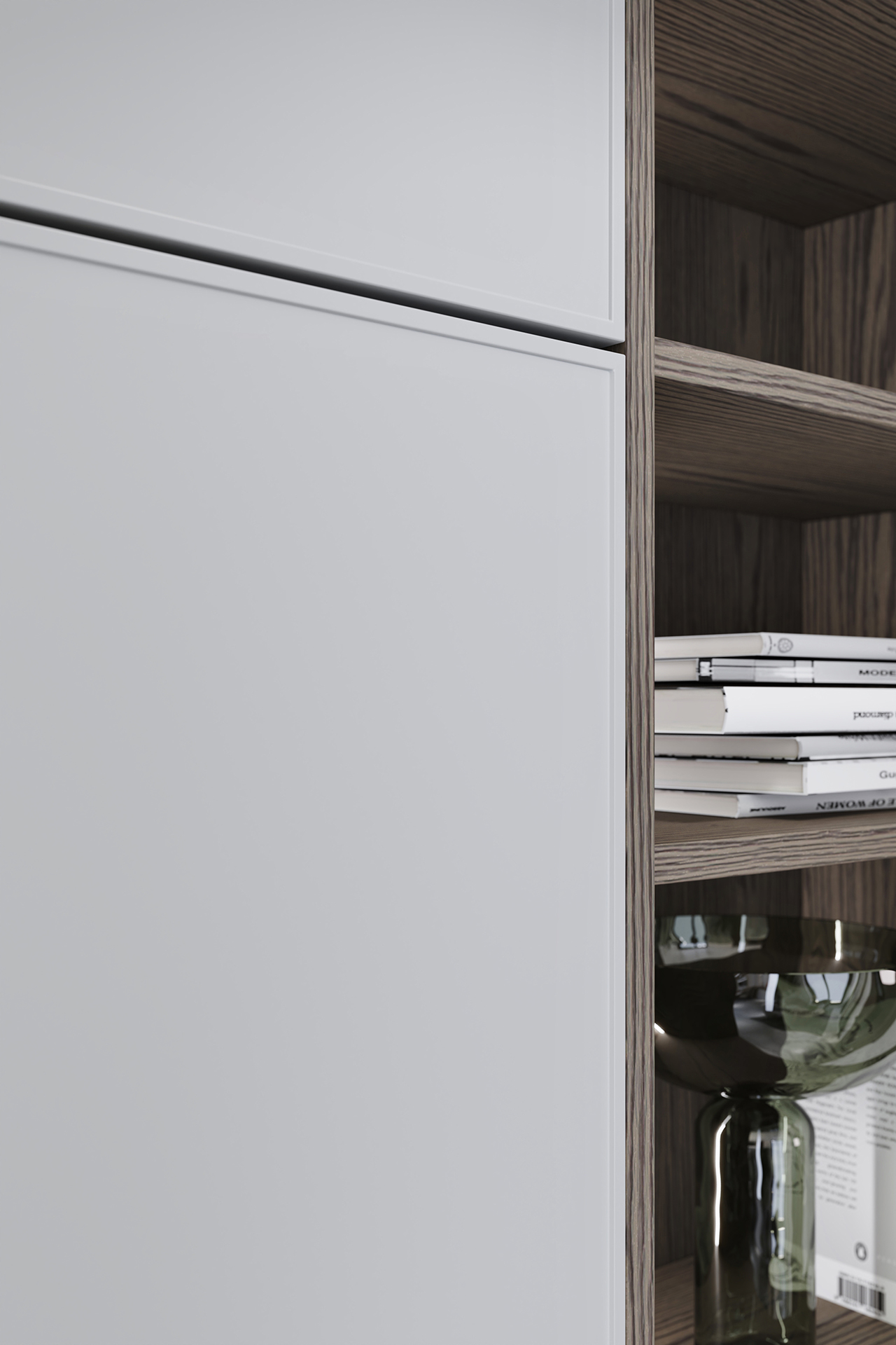 Je možné zvolit minimalistické bezúchytkové řešení nebo designovou úchytku z naší nabídky.