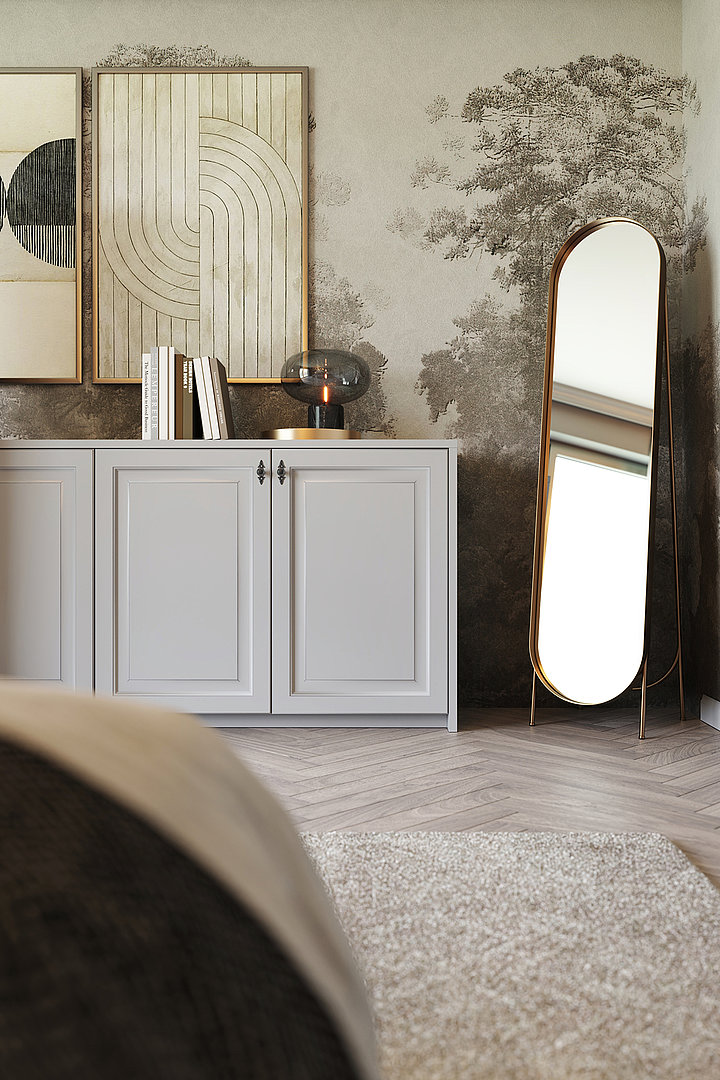 Honosná šatní skříň MILANO s lehce rustikálním nádechem vnese do každé ložnice klasický styl.