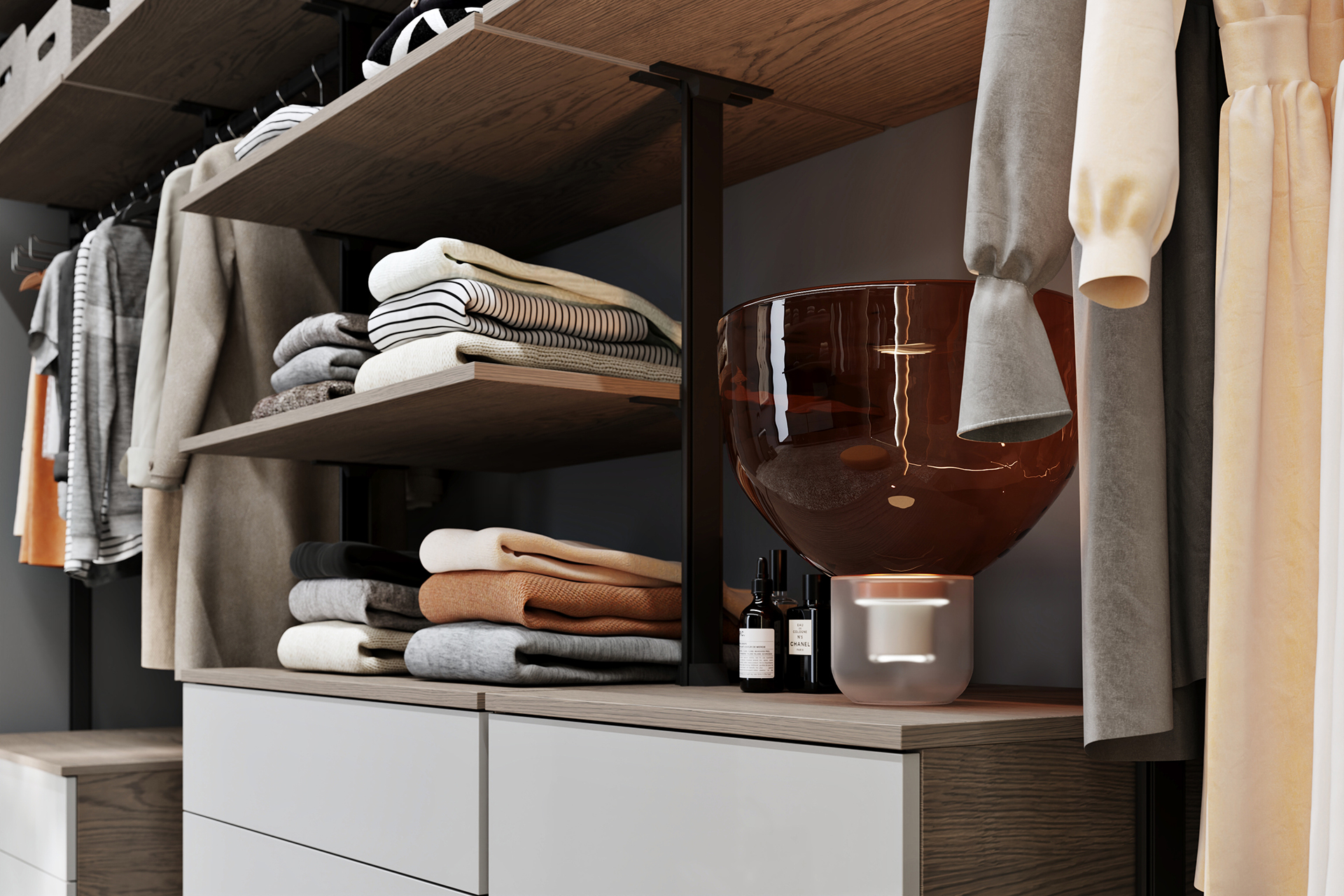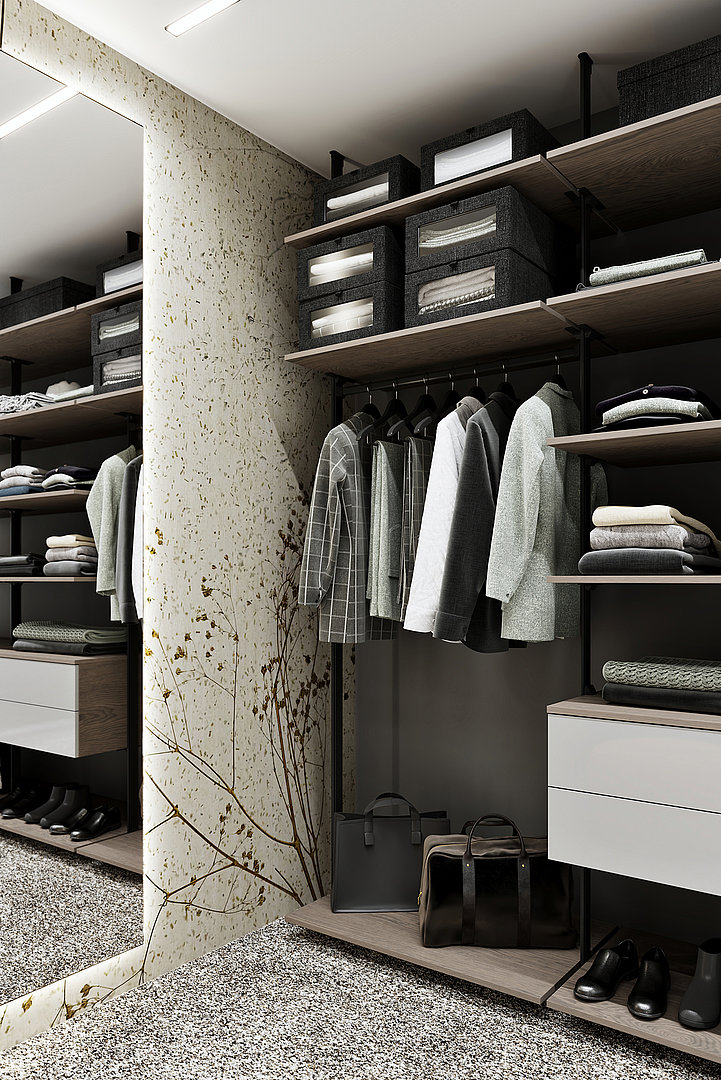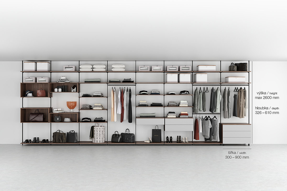 Otevřená šatna LIBRE zaujme svou hravostí, elegancí a variabilitou.