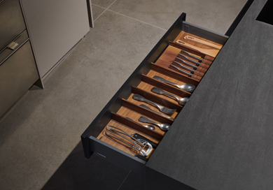 Skvěle ho doplňuje nový systém vnitřního členění AMBIA-LINE. Přehledný sortiment rámečků s variabilním použitím nabízí mnoho možností uspořádání.