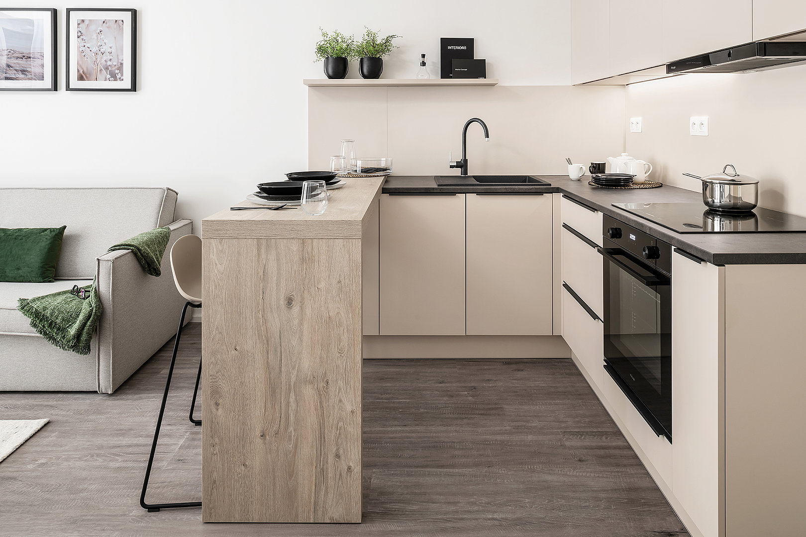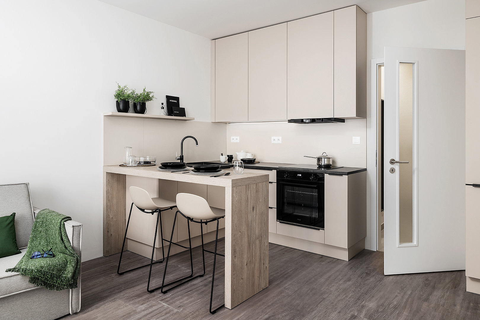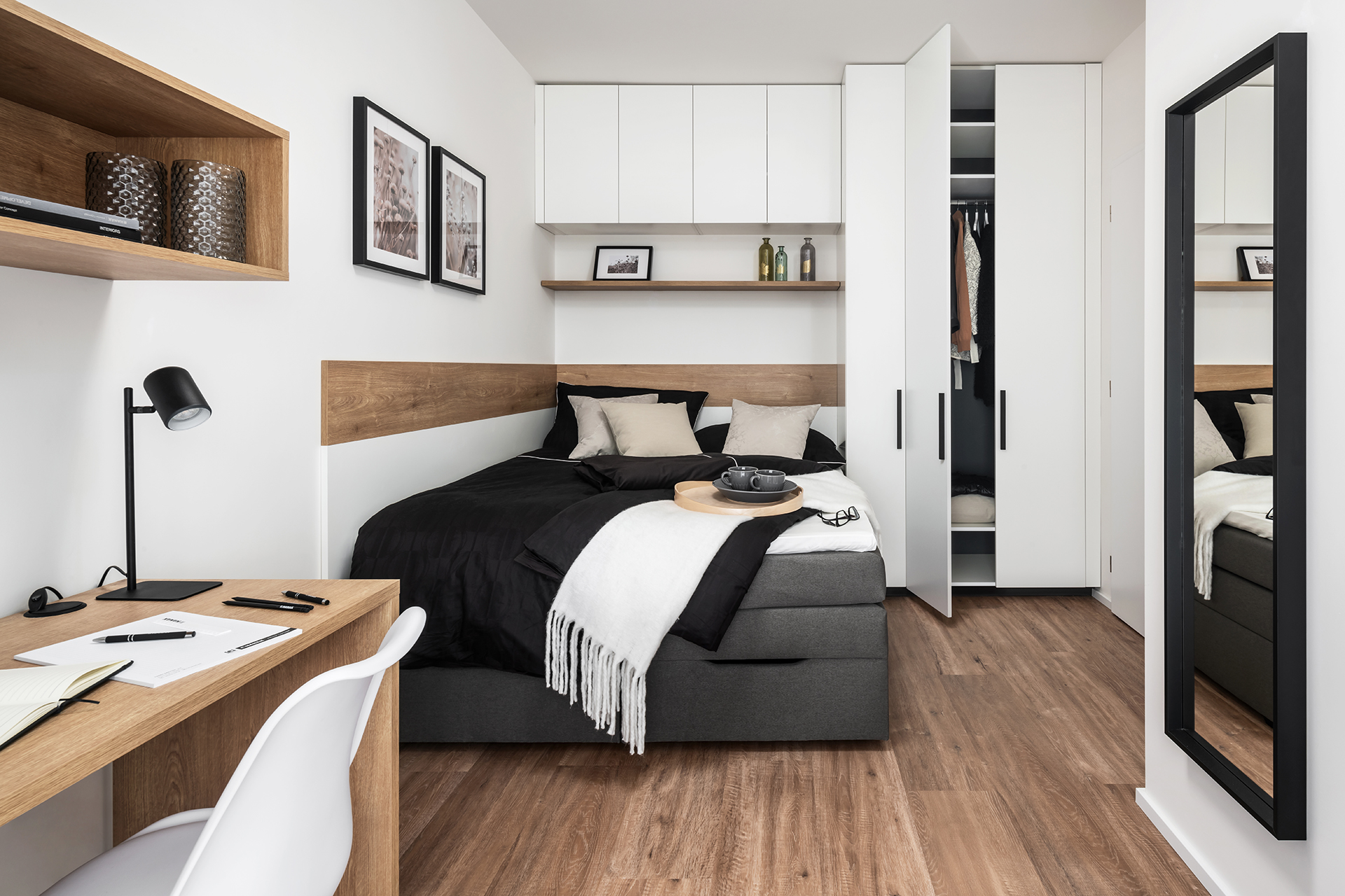 Naše spolupráce začala zpracováním dvou vzorových bytů, kde jsme znovu předvedli naši bezkonkurenčnost s nejvyšší kvalitou nábytku i pro nájemní bydlení. Interiéry byly řešeny na míru s kompletním vybavením a důrazem na dostatek úložného prostoru. Realizace nájemních bytů se nese v duchu praktického využití pokojů s designovými prvky. Tým designérů, architektů, technické přípravy a výroby opět předvedl precizní práci, na kterou jsme patřičně hrdí. Kvalita, rychlost dodání a komplexnost poskytnutých služeb nakonec také rozhodla o výběru právě naší společnosti pro tento developerský projekt.