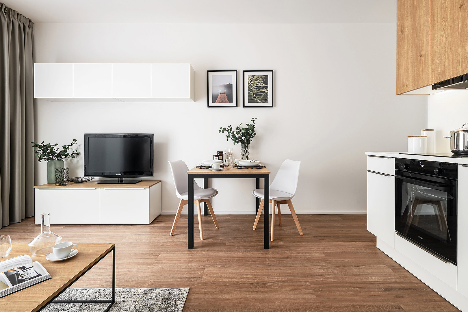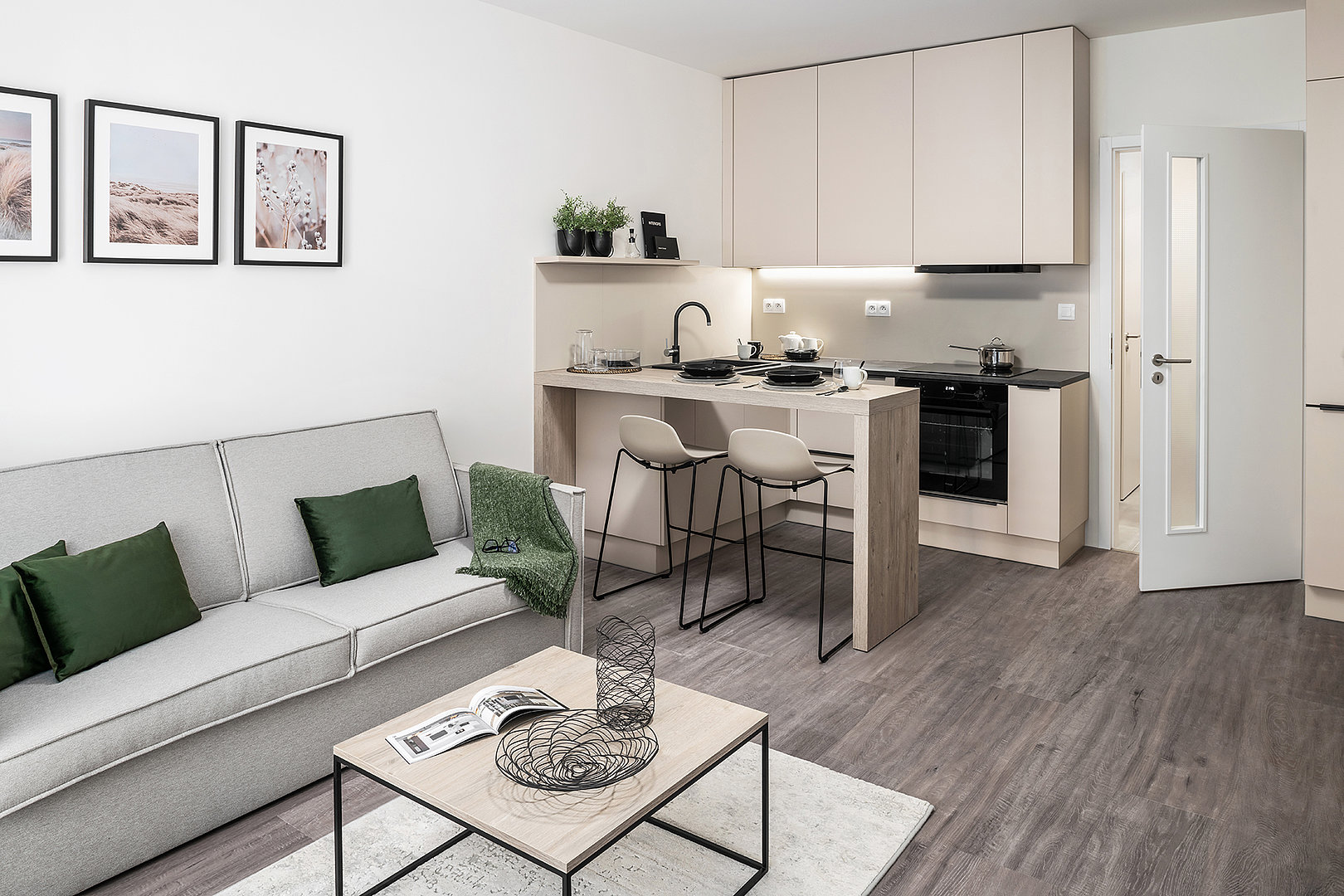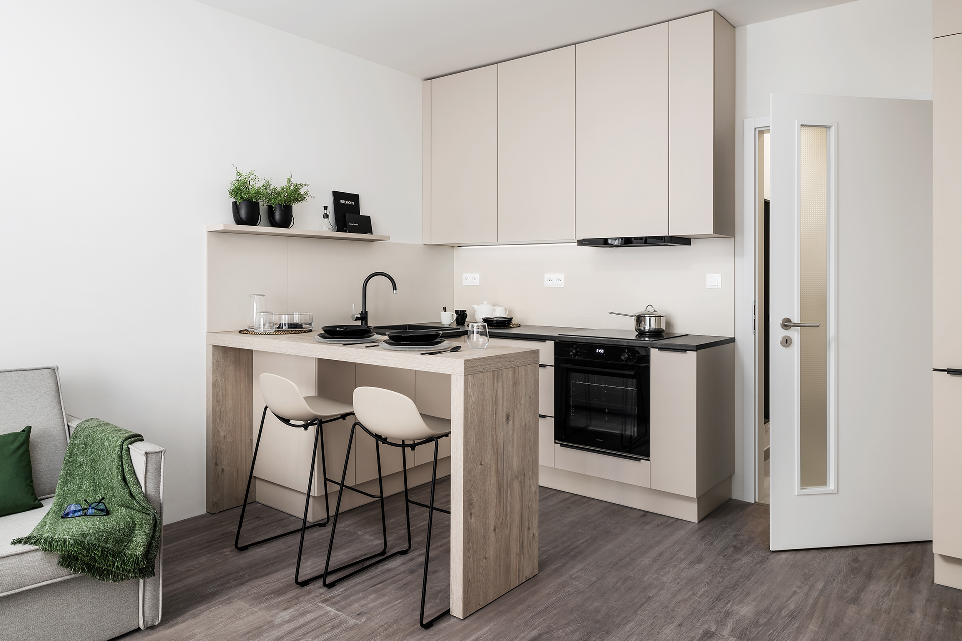 Naše spolupráce začala zpracováním dvou vzorových bytů, kde jsme znovu předvedli naši bezkonkurenčnost s nejvyšší kvalitou nábytku i pro nájemní bydlení. Interiéry byly řešeny na míru s kompletním vybavením a důrazem na dostatek úložného prostoru. Realizace nájemních bytů se nese v duchu praktického využití pokojů s designovými prvky. Tým designérů, architektů, technické přípravy a výroby opět předvedl precizní práci, na kterou jsme patřičně hrdí. Kvalita, rychlost dodání a komplexnost poskytnutých služeb nakonec také rozhodla o výběru právě naší společnosti pro tento developerský projekt.