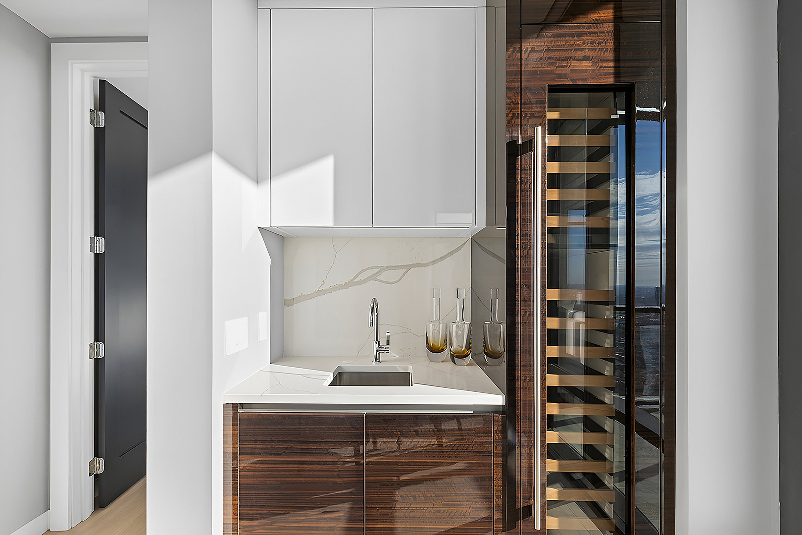 Výjimečný bytový projekt, umístěný přímo v srdci města nad náměstím, definuje novou éru luxusního městského bydlení. S exkluzivními rezidencemi začínajícími na 26. patře, kde na každém podlaží najdete maximálně čtyři rezidence, je zaručeno absolutní soukromí a neopakovatelné výhledy na filadelfský horizont. Projekt představuje vrchol bydlení s kompletním servisem, kde je každý detail pečlivě promyšlen, aby poskytl obyvatelům nejen nezapomenutelné bydlení, ale i životní styl, ve kterém se luxus snoubí s komfortem a soukromím. Naše společnost vyráběla do těchto luxusních rezidencí zejména kuchyně, bary, koupelnový nábytek a nábytek do technických místností, a to celkem do 15 pater, kde v každém z nich jsou zmiňované 4 soukromé apartmány. Samozřejmostí bylo použití speciálních prvků a exkluzivních dýh určených pro americký trh.