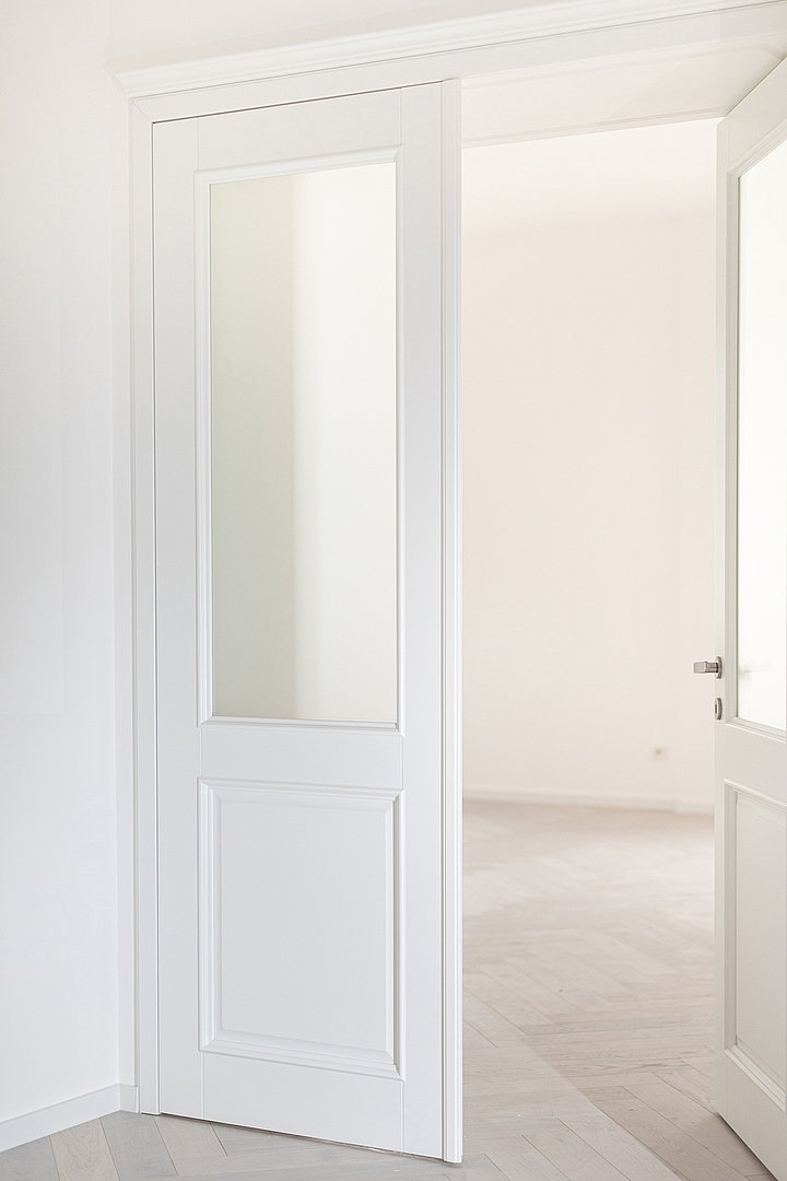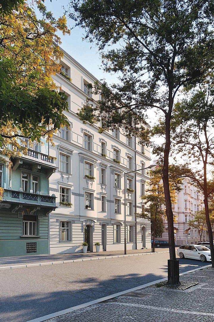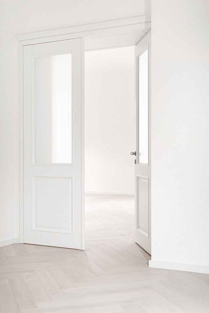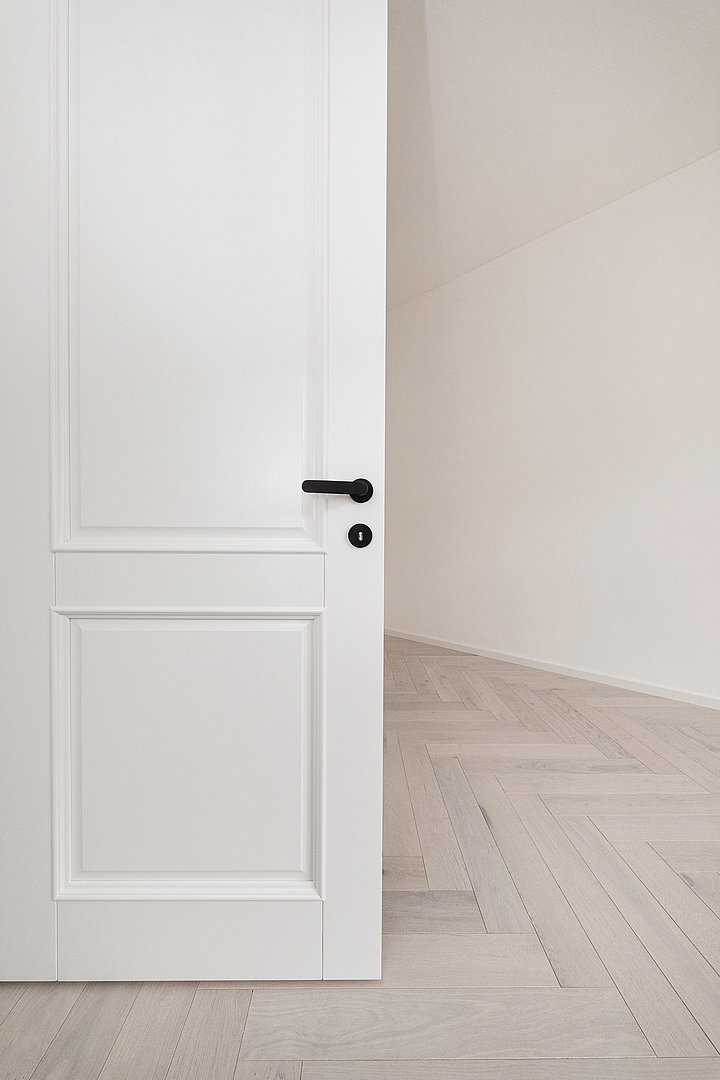 Krásné bydlení na Vinohradech je určené pro ty, co znají svůj směr a životní styl. Secesní budova nabízí 35 bytových jednotek, kdy v každé z nich najdete naše interiérové dveře v bílém laku s decentním rámečkem, které se skvěle hodí pro tento styl bydlení.