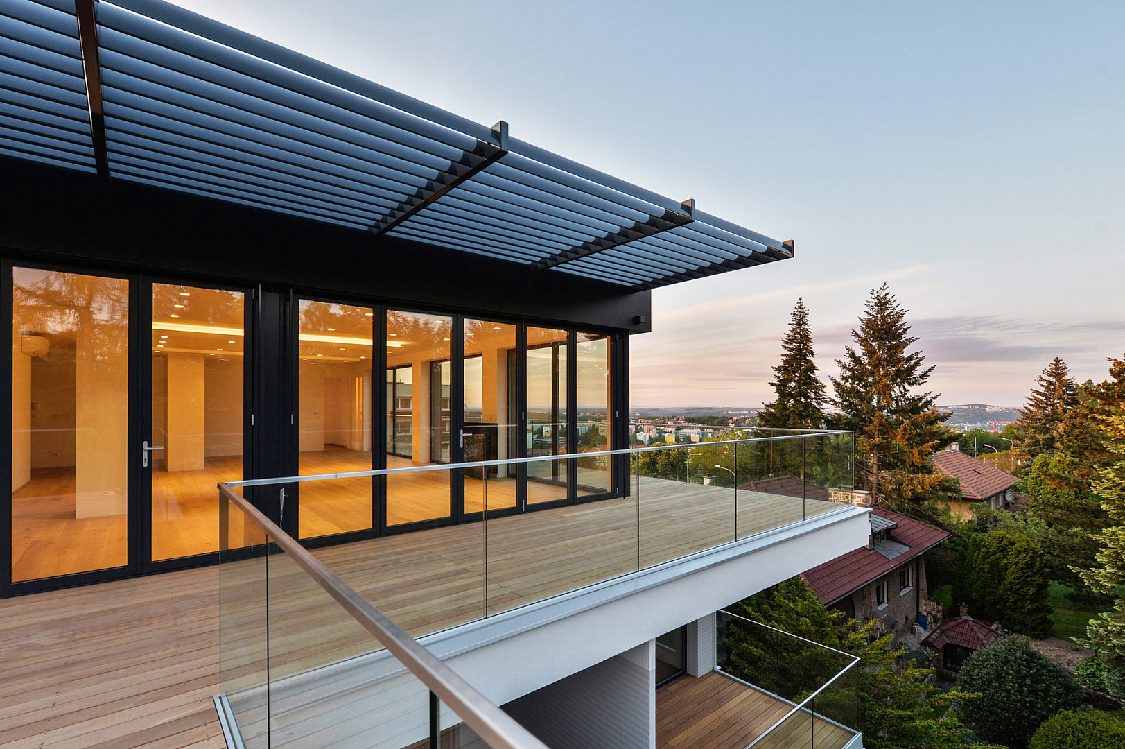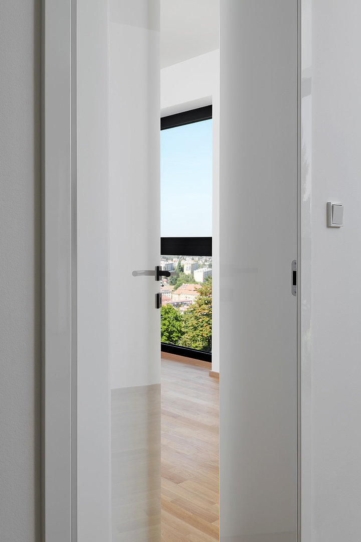 Rezidenční projekt Na Petřinách 7, nabízející 13 bytových jednotek s interiérovými dveřmi HANÁK, ztělesňuje nový koncept prémiového městského bydlení nablízko přírodě. Čisté architektonické linie funkcionalismem inspirované novostavby, působivě kontrastují se zákoutími rozlehlé, jižně orientované zahrady lemované vzrostlými stromy.