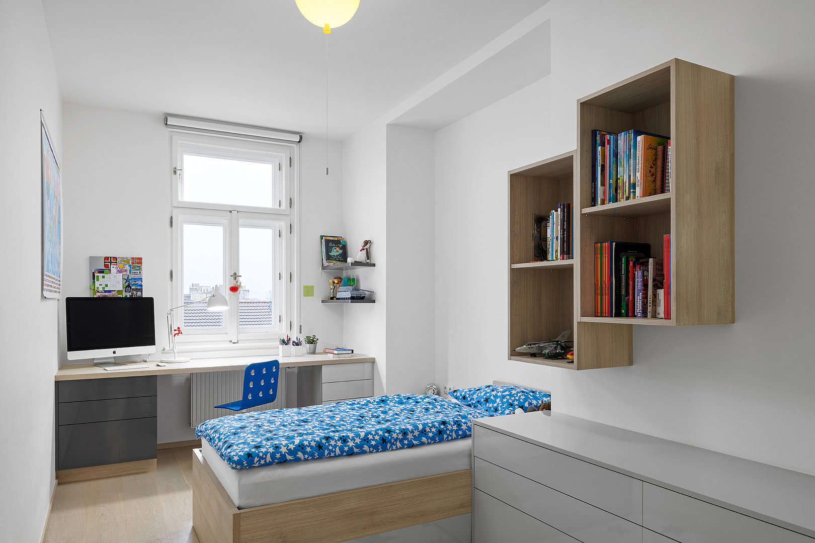 Pokoj pro dospívajícího teenagera je navržen tak, aby splňoval potřeby školáka, byl nadčasový a zároveň stylový.
