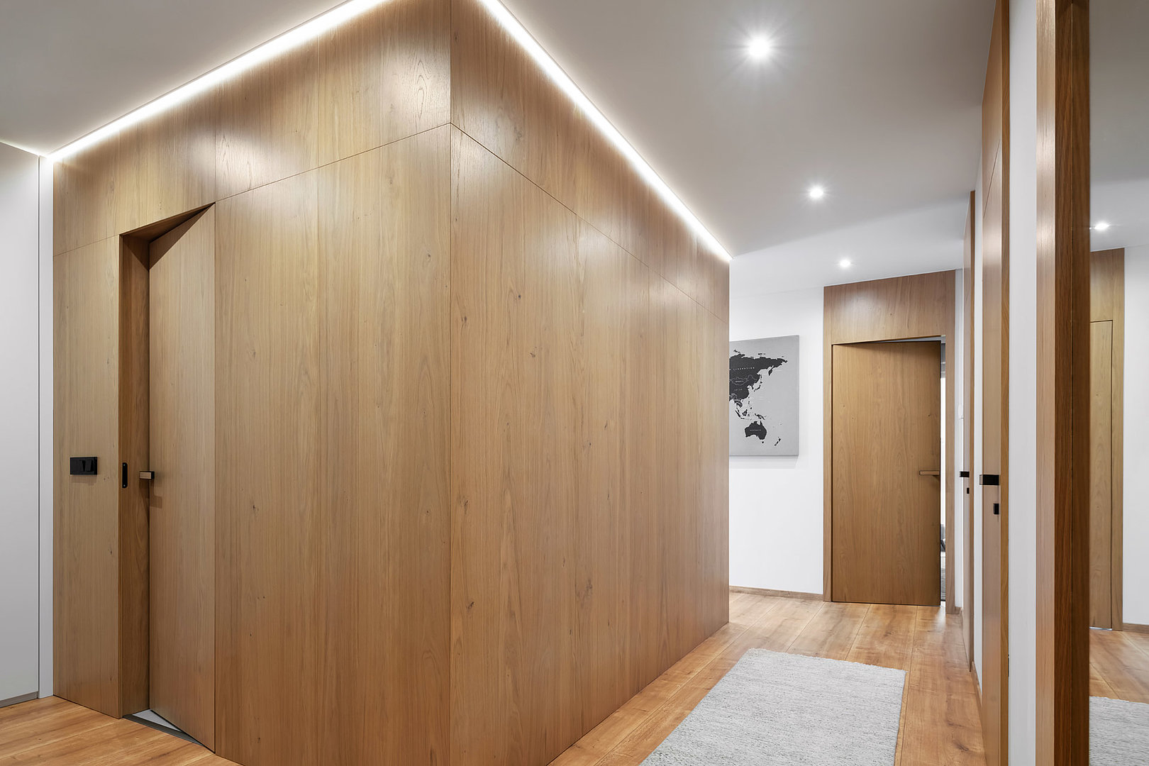 Dveře v krásném interiéru na míru s přírodní dýhou