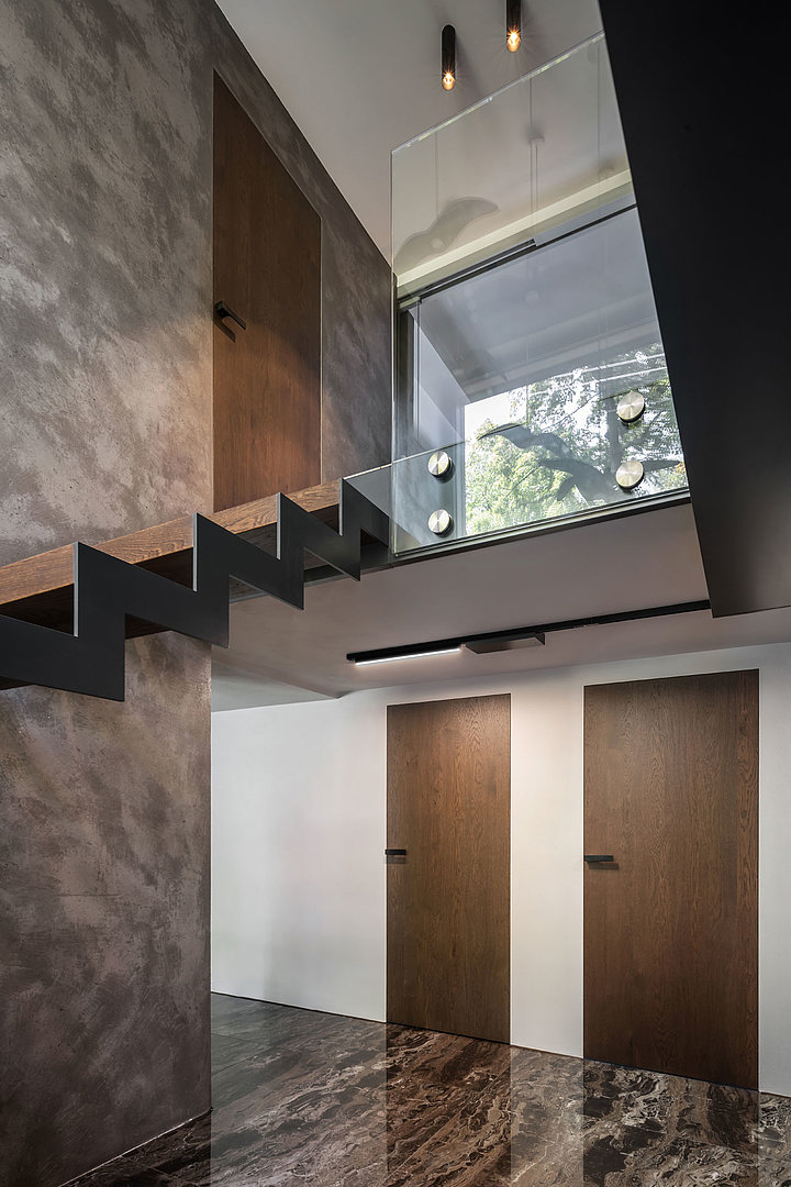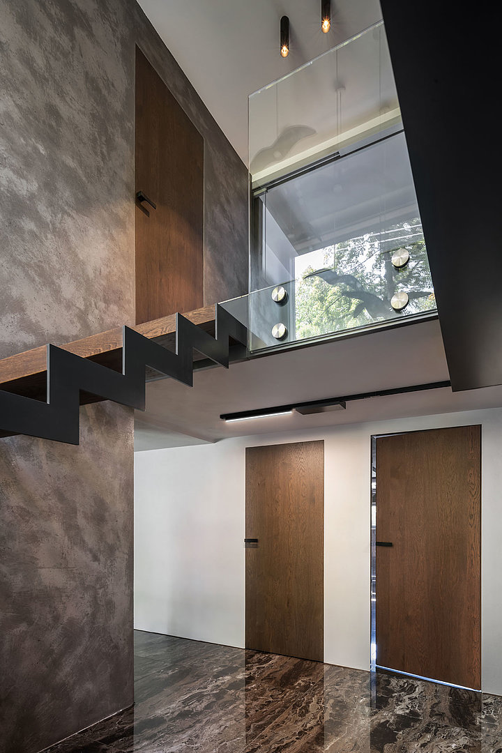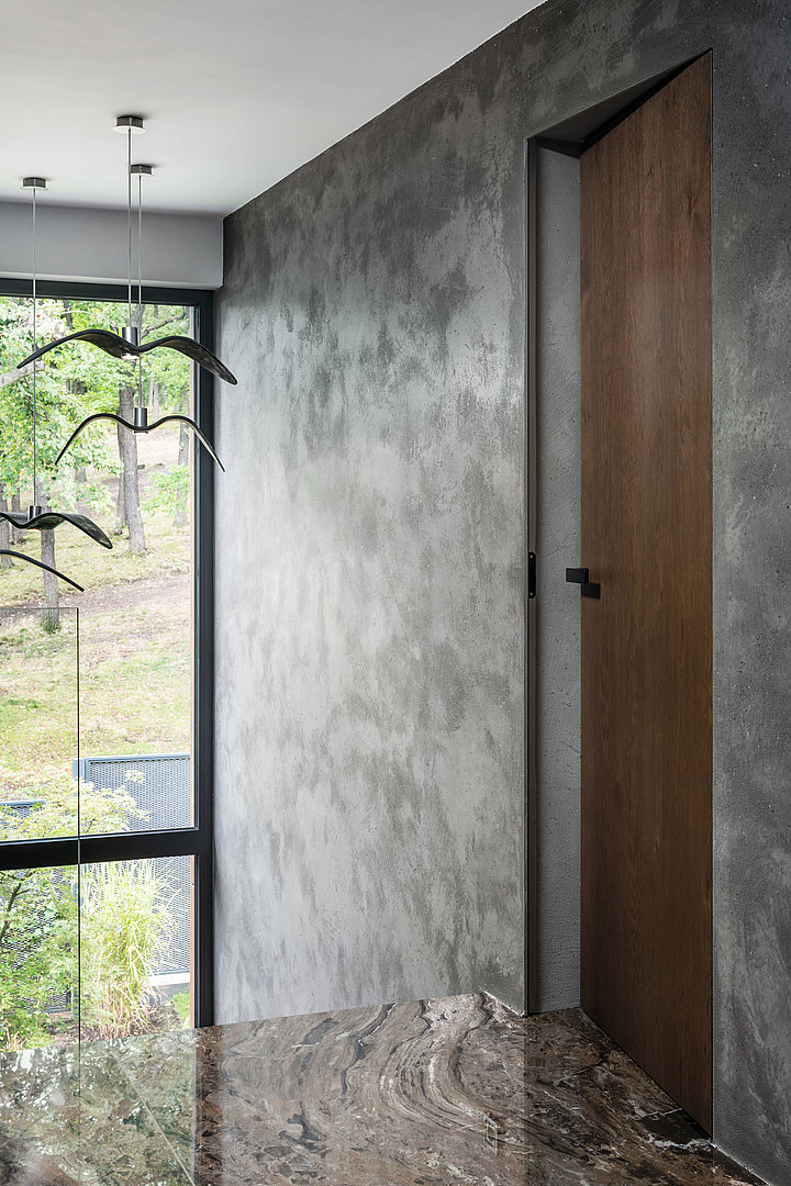 Interiérové dveře v osobitém interiéru s tmavou rustikální dýhou