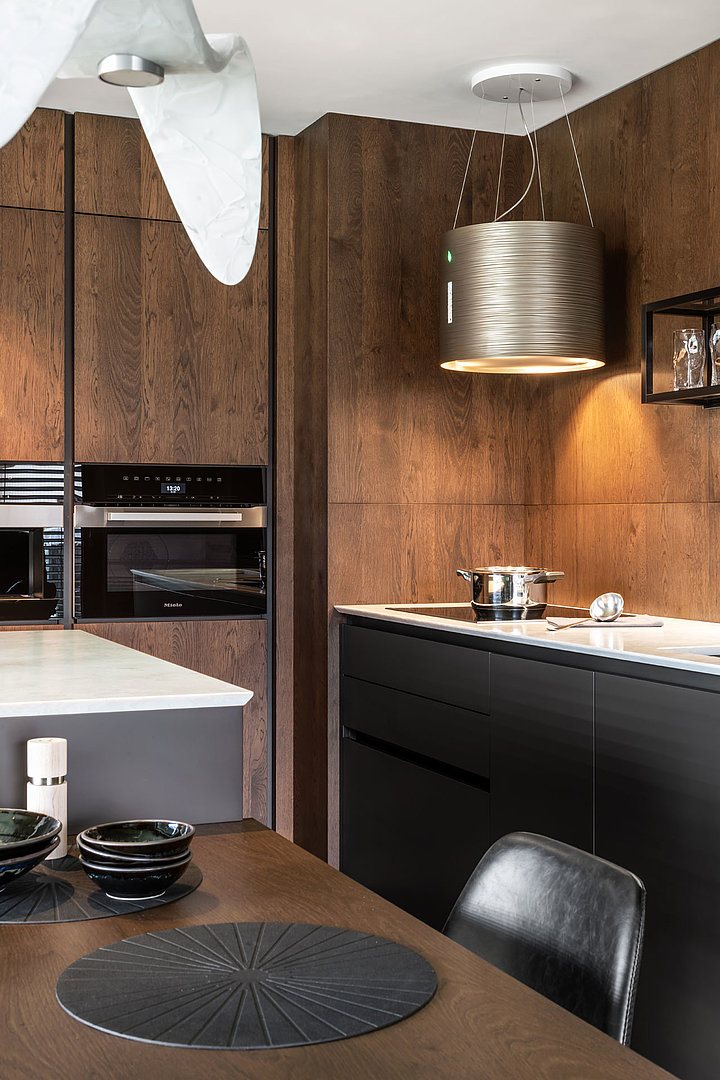 Hanák nábytek Realizace Osobitý interiér Moderní kuchyně Rustikální tmavá dýha