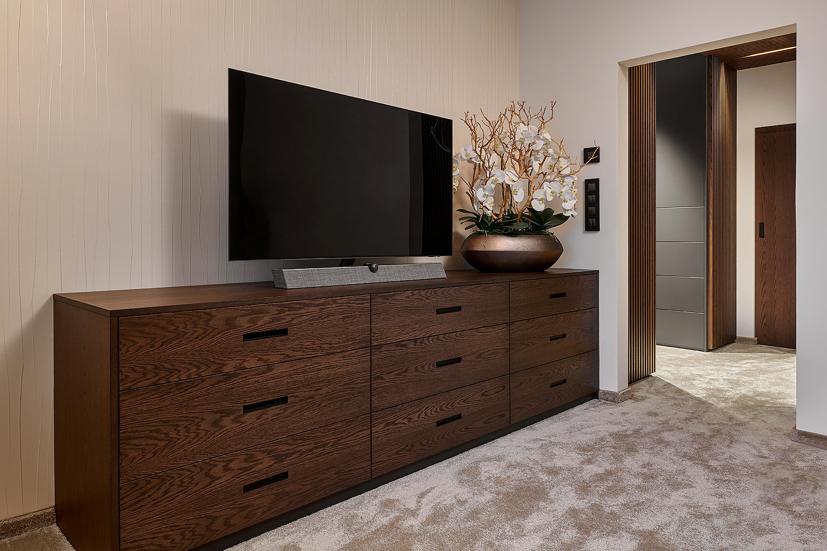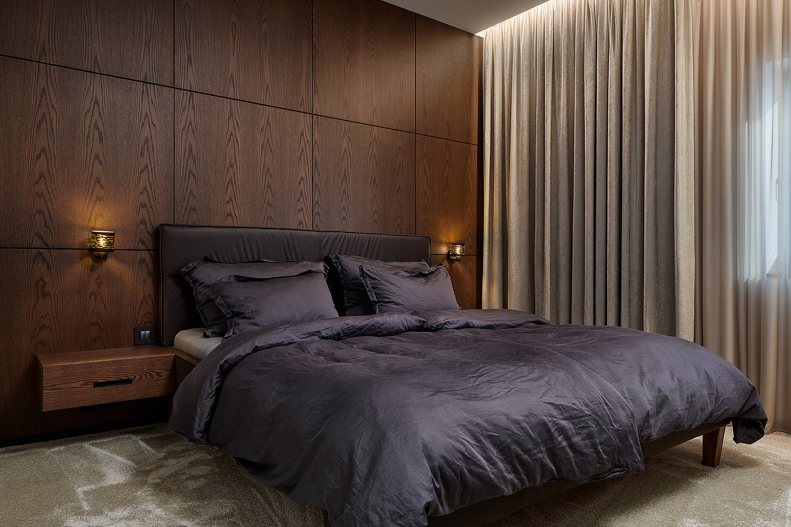 Ložnice v luxusní vile s jedinečným designem nábytku