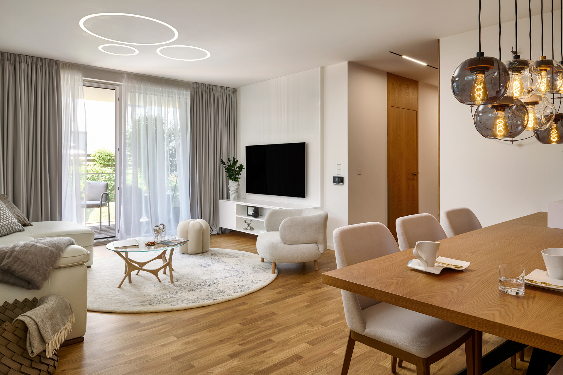 Vstupte do interiéru, kde se moderní design snoubí s útulností a citem pro detail. Každý prostor má svou osobitost, přesto je mezi nimi patrná jednotná linie, která propojuje celý byt v dokonale sladěný celek.