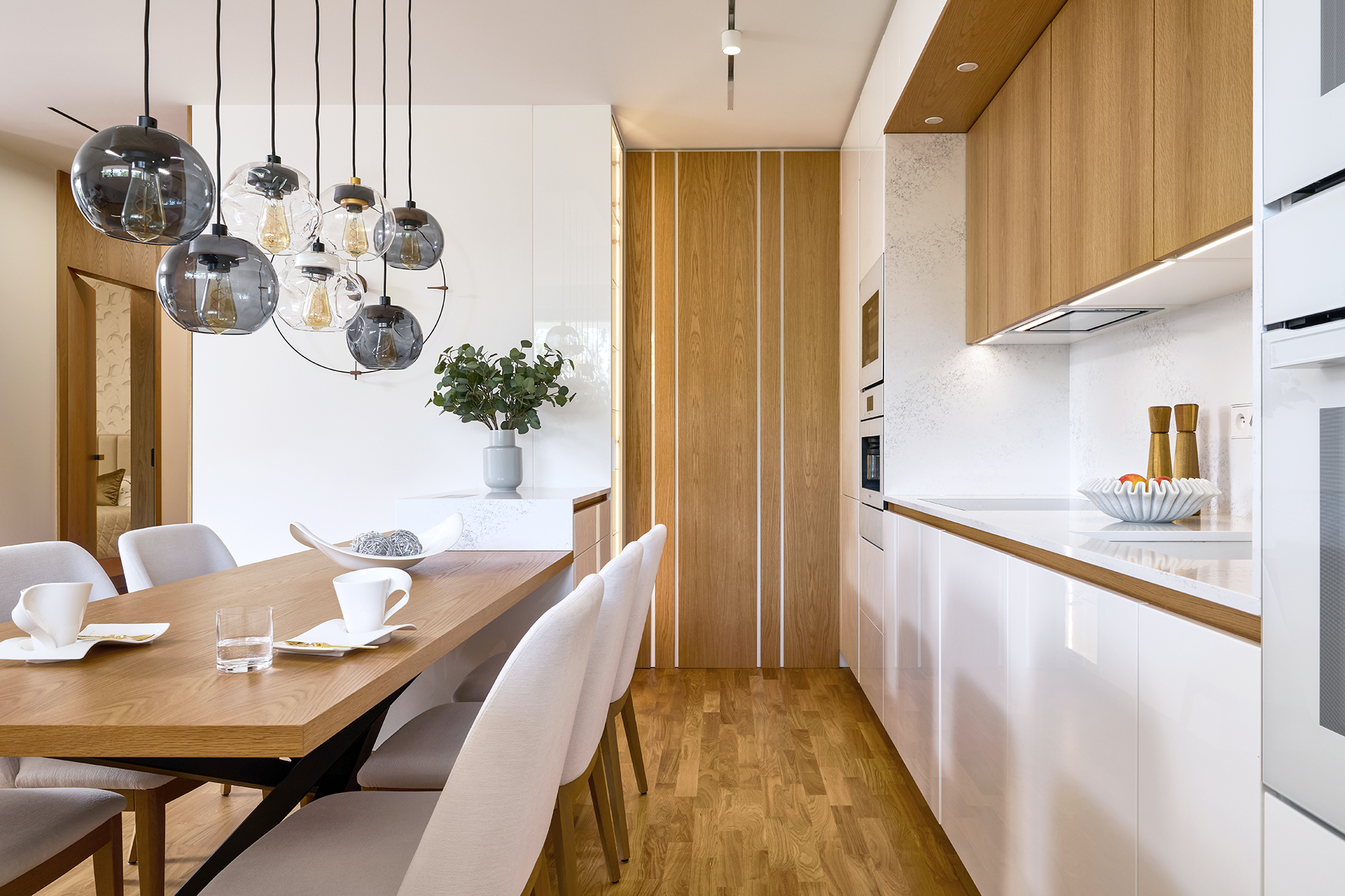 Nadčasová elegance v kombinaci dřeva a bílého lesku
