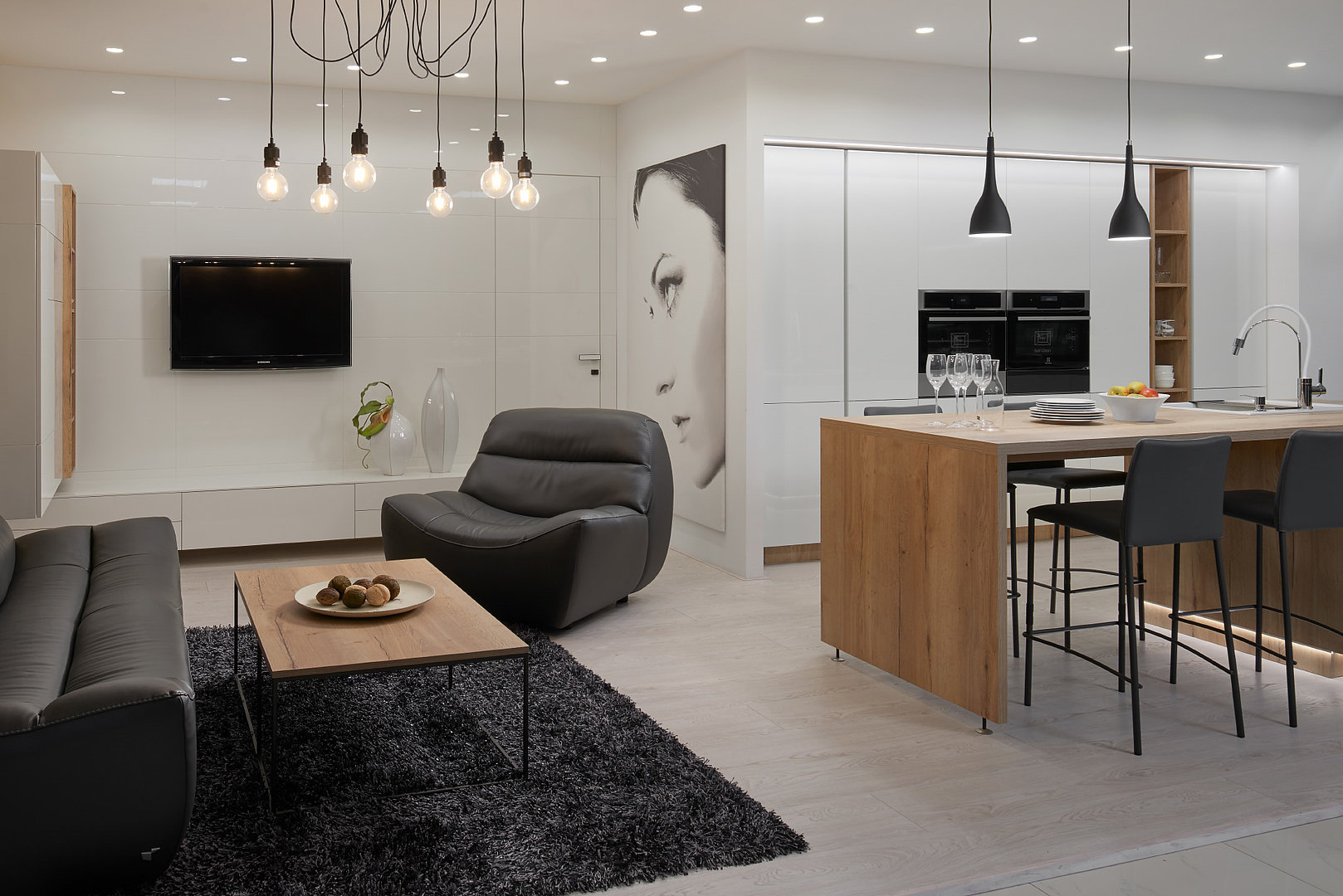 Hanák bílá kuchyně, obývák