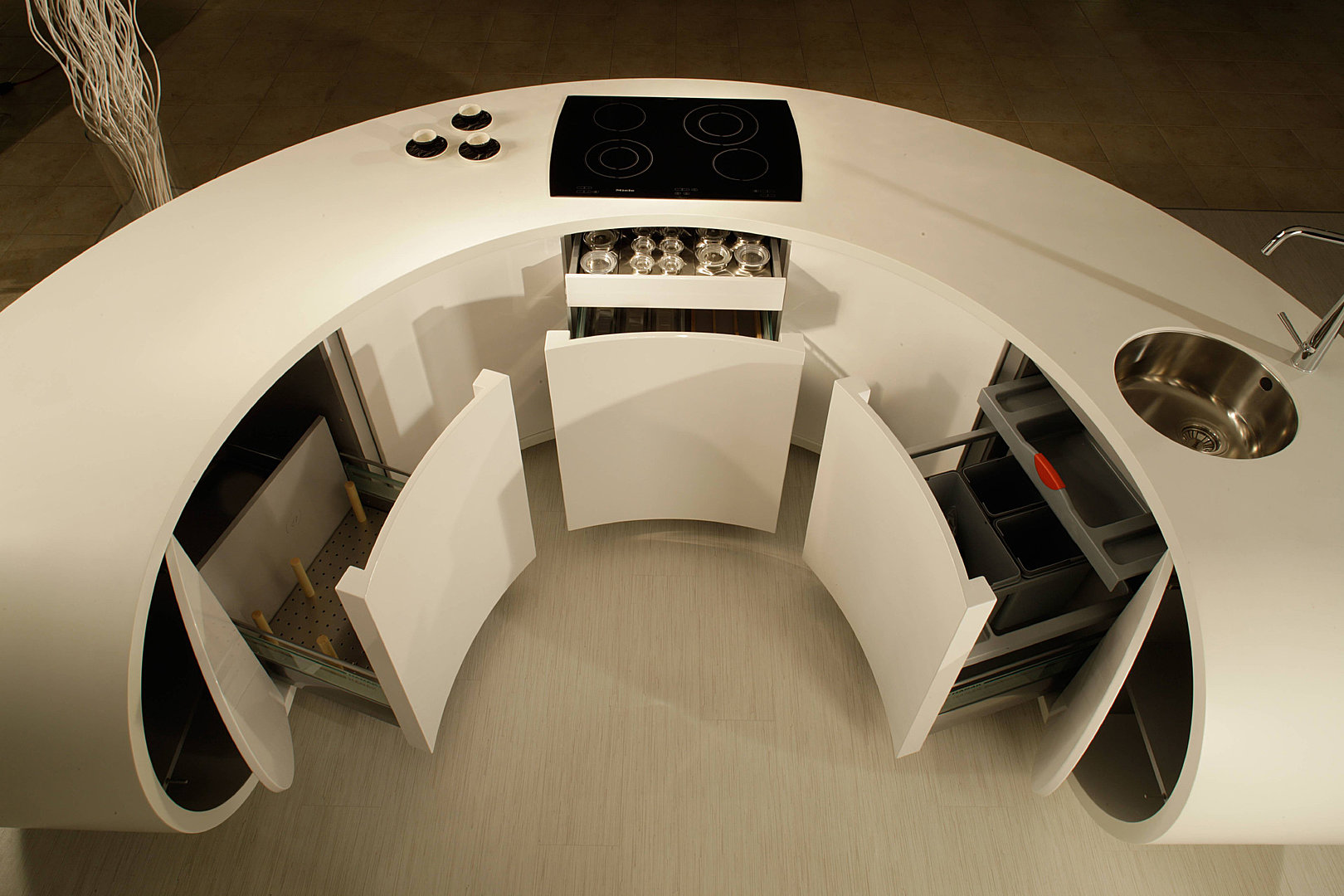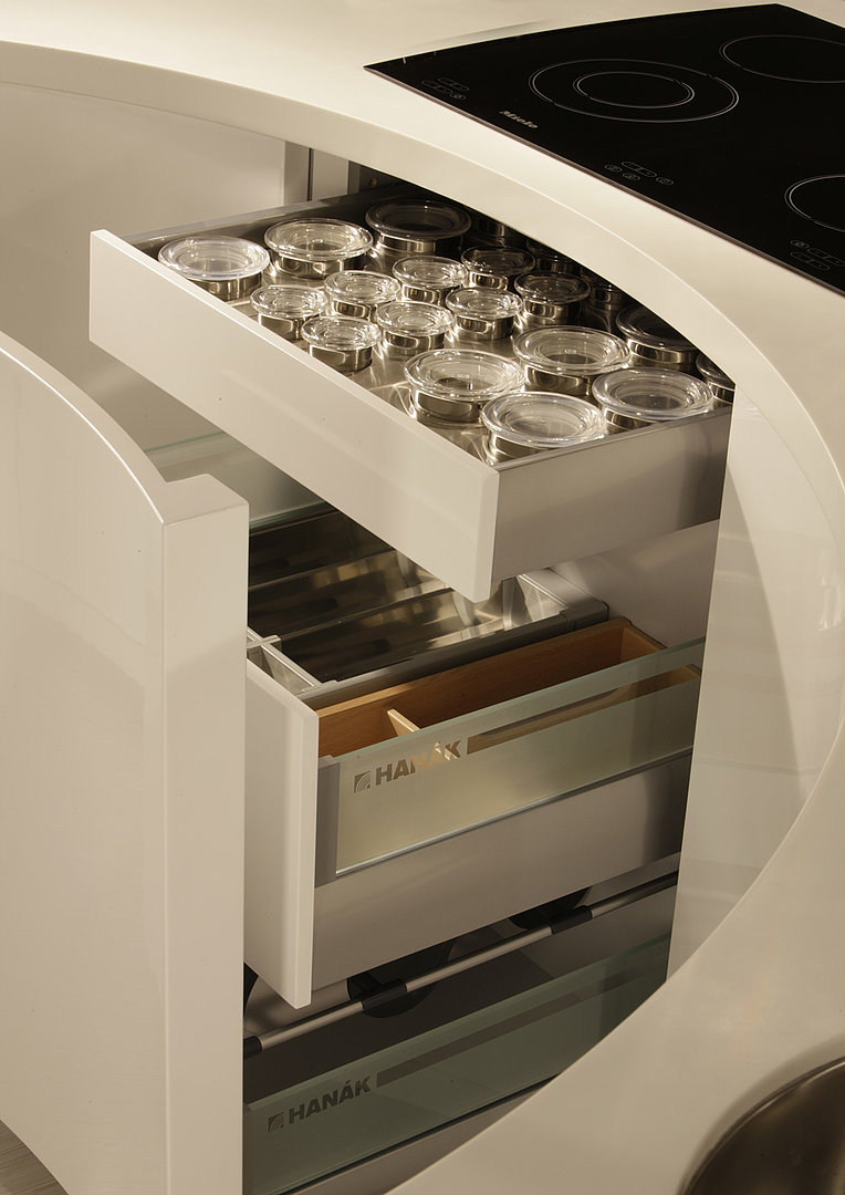 Originální kuchyně Galaxie s oblými tvary a čistými liniemi