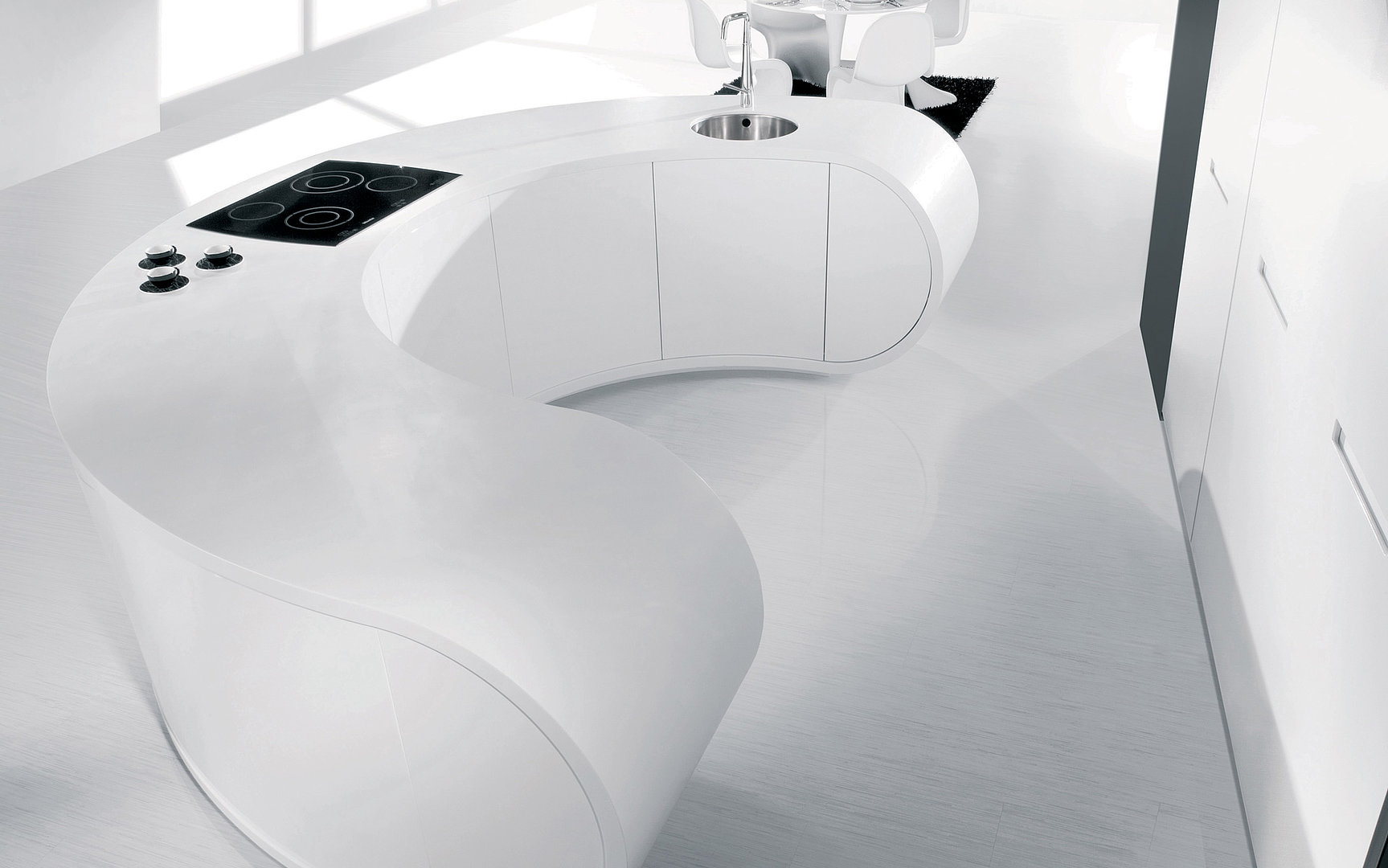 Pokud jste se nadchli pro novodobý organický design, který je velmi originální a osobitý, pak se pravděpodobně zamilujete do kuchyně GALAXIE. Její oblé tvary fascinují čistým provedením a jednoduchostí.