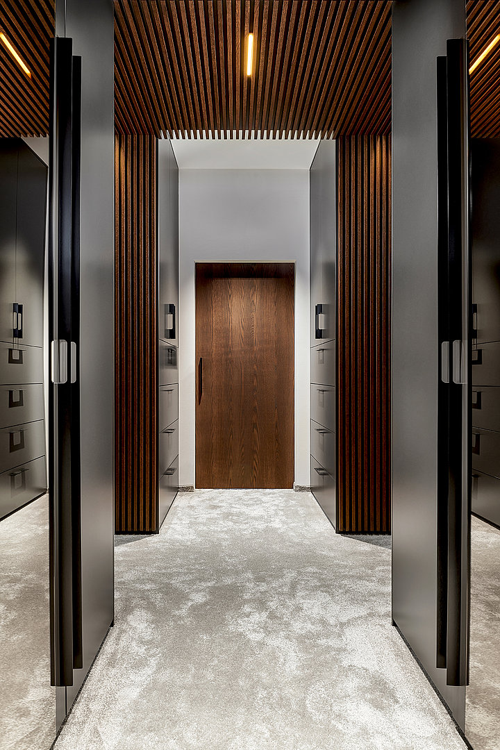 Šatní skříně v luxusní vile s jedinečným designem nábytku