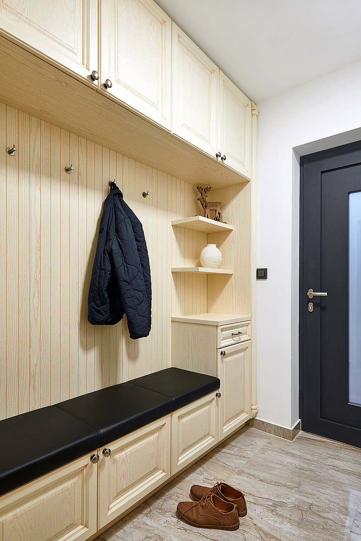 Nadčasová realizace interiéru s rustikálními prvky, které působí velmi designově.