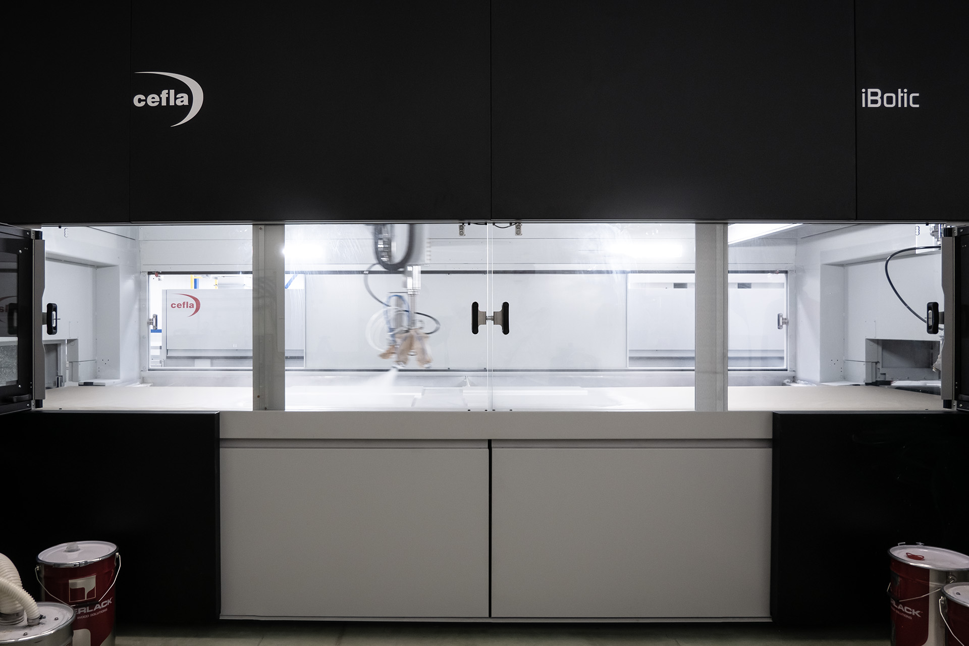 Только роботизированная покраска обеспечит равномерное распыление лака на каждую деталь мебели, в результате чего достигается безупречно лакированная и прочная поверхность.