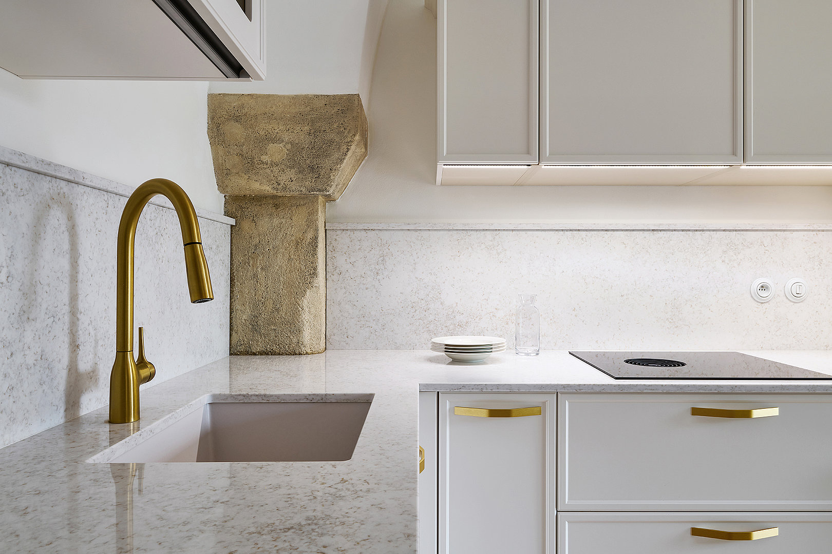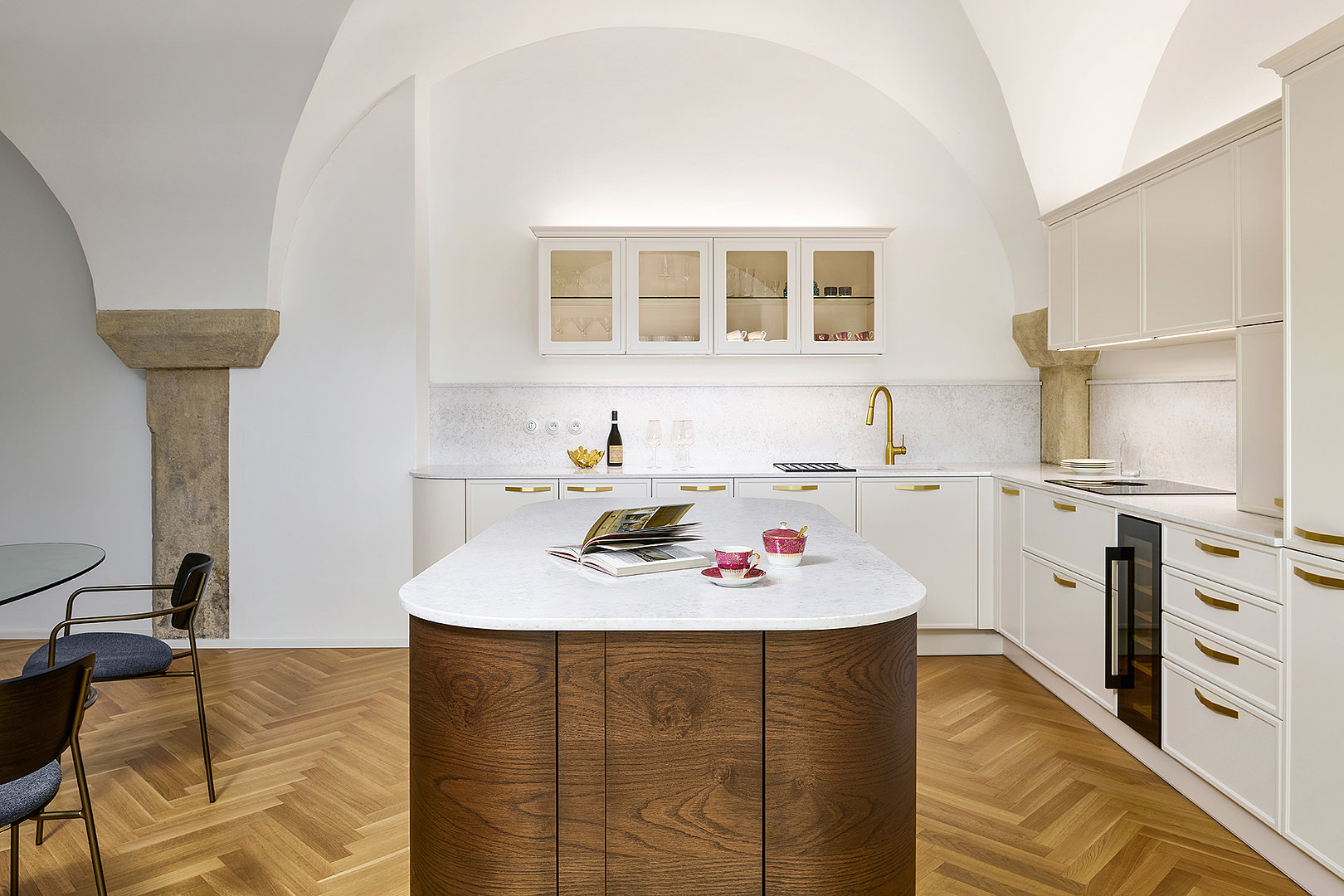В уникальной обстановке бывшего замка была создана кухня, которая деликатно соединяет историю с современным представлением о роскоши. Атмосфера сводчатых потолков и массивных стен создает идеальный фон для реализации проекта, в котором сочетаются премиальные материалы, точная обработка и плавные линии.