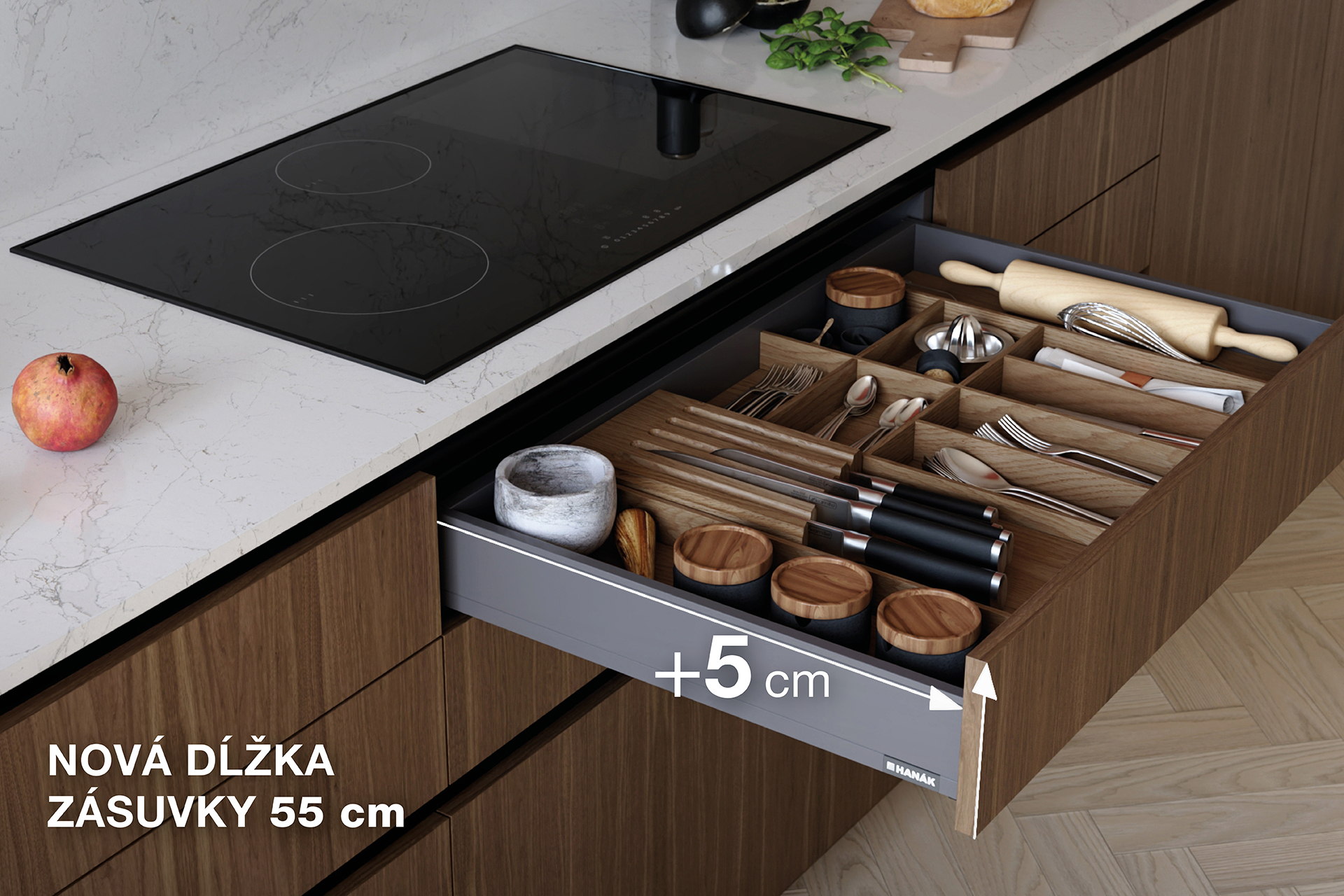 Naše najnovšie dizajnové riešenie HANÁK SMART ERGONOMY, ktoré je súčasťou všetkých modelov kuchýň a nábytku HANÁK, poskytuje nielen viac priestoru, ale zásadne mení spôsob, akým vnímame pohodlie a ergonómiu. Inovatívne riešenie prináša aj množstvo ďalších výhod pre vašu maximálnu spokojnosť.